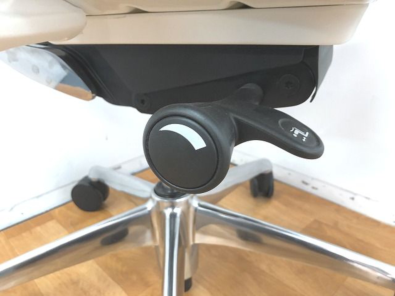- 座面右下のレバーをスライドさせる「クイックスライドオペレーション」で、リクライニング反力を調整できます。強さの状態が視覚的にわかるため、直感的に操作がおこなえます。