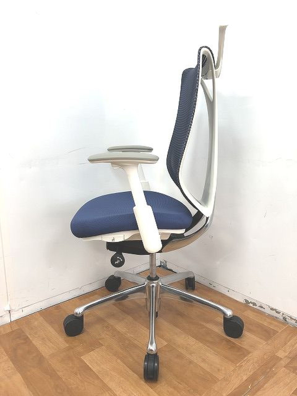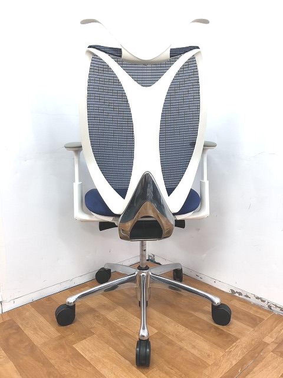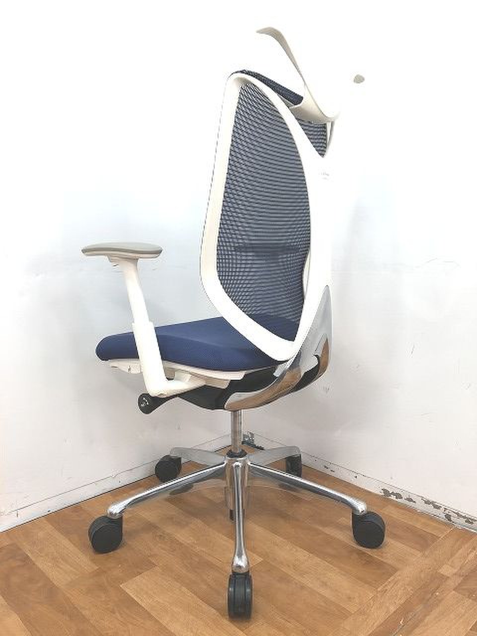 【前傾チルト付!流れるような美しいフォルムの最高級メッシュチェア!】■オカムラ(okamura)製 Sabrina(サブリナ) ハイバック 肘付き ■可動肘 ■背面メッシュ:アクアブルー 座面:ブルー ホワイトフレーム