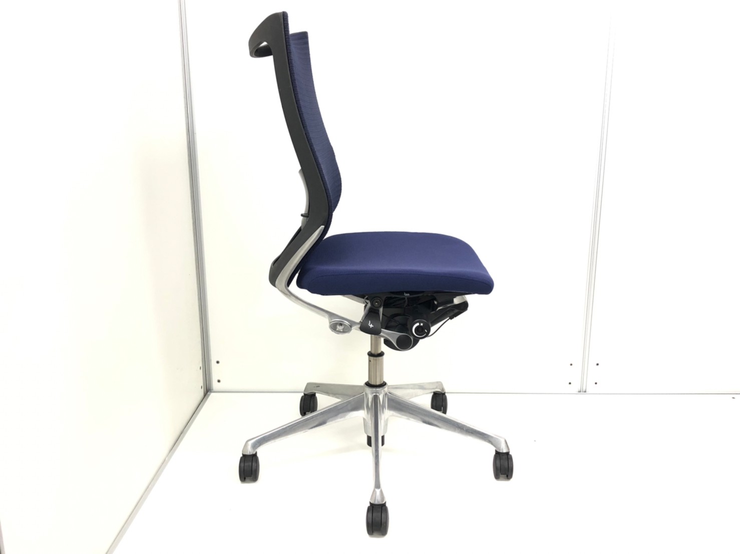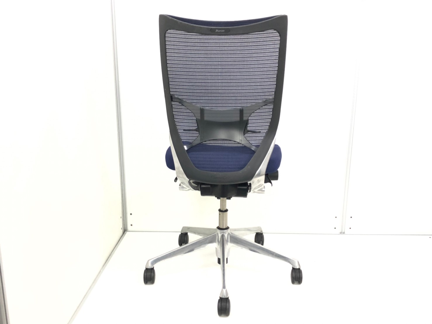 【在庫入替セール】【専門クリーニング業者にて洗浄済み!!】肘無しのバロンチェア ハイバック ネイビーブルー 【座面クッション・背もたれメッシュ】- 東大阪店
