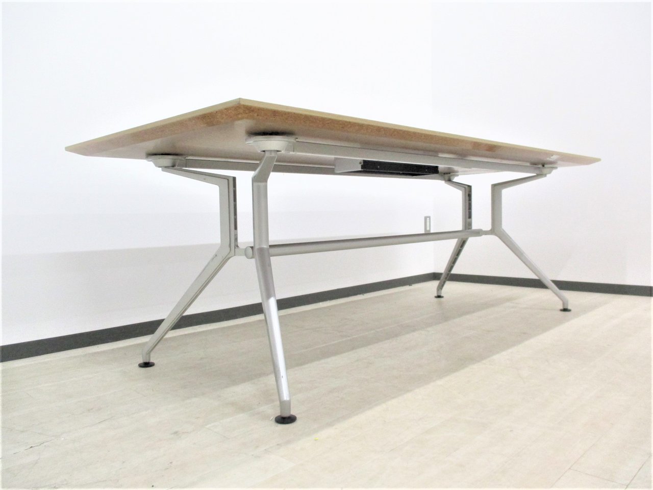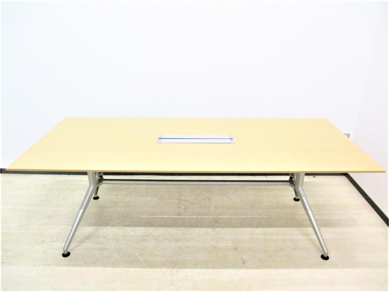 【会議室だけでなく休憩室でも!6~8名様対応・大型テーブル】■イトーキ(ITOKI) DDDシリーズ ミーティングテーブル 会議テーブル 幅2400×奥行900mm ■木目ナチュラル天板 脚シルバー色 オフィスバスターズ東大阪店