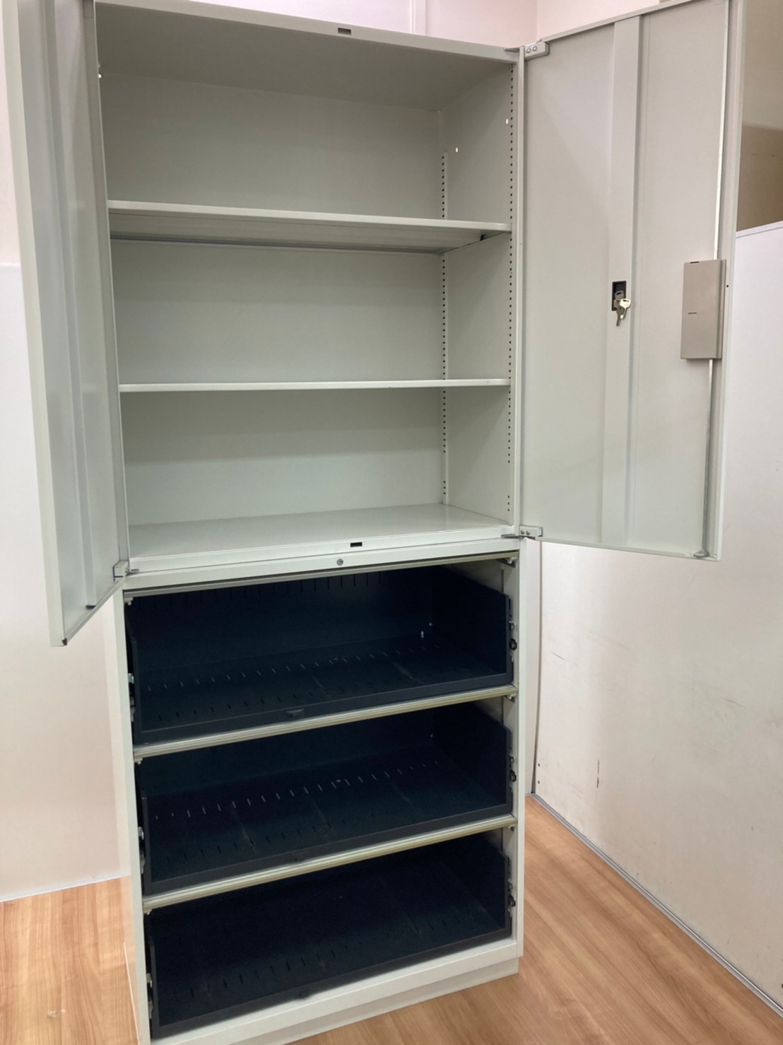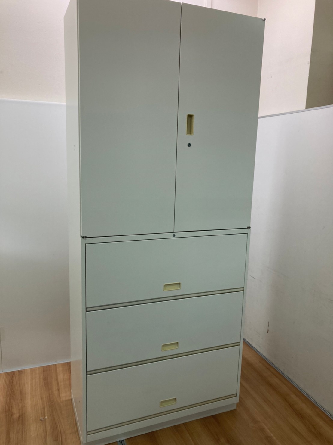 【T11】【商品入替のため、残り1台限り】イトーキ製 シンライン ホワイト W900xD450xH2140サイズ シリンダー錠 高品質で安心のスチールキャビネット! コレ1台で書類が一気に整理できます! 両開き+3段ラテラル 上下書庫セット!!