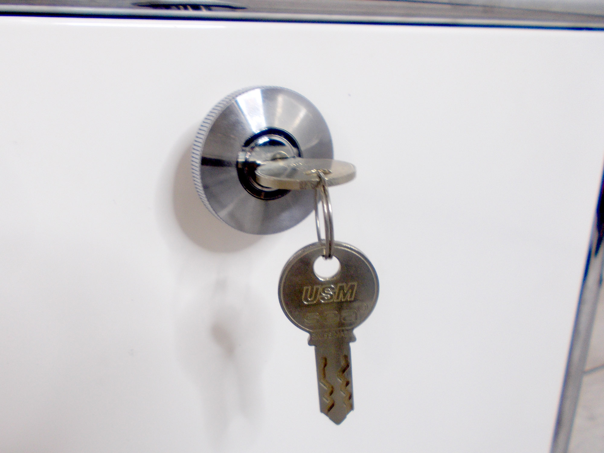 システムキャビネットメーカー『USMハラー』の3列1段キャビネットです。扉は両側とも鍵付きで前倒しに開閉します。