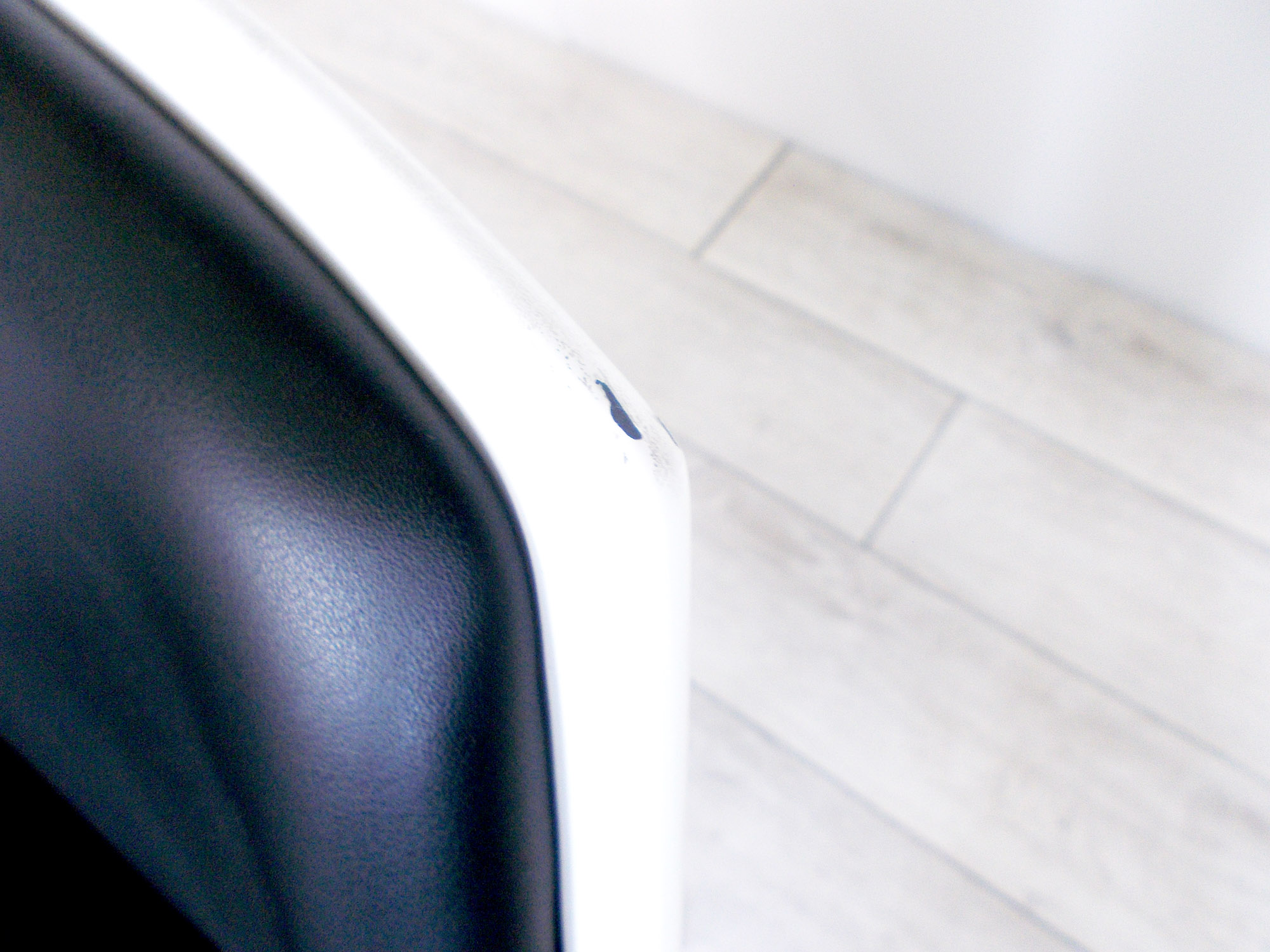 - かなり強い濃い黄ばみ・変色が商品全体にある。(例、座面・背もたれ、脚部等にある。)