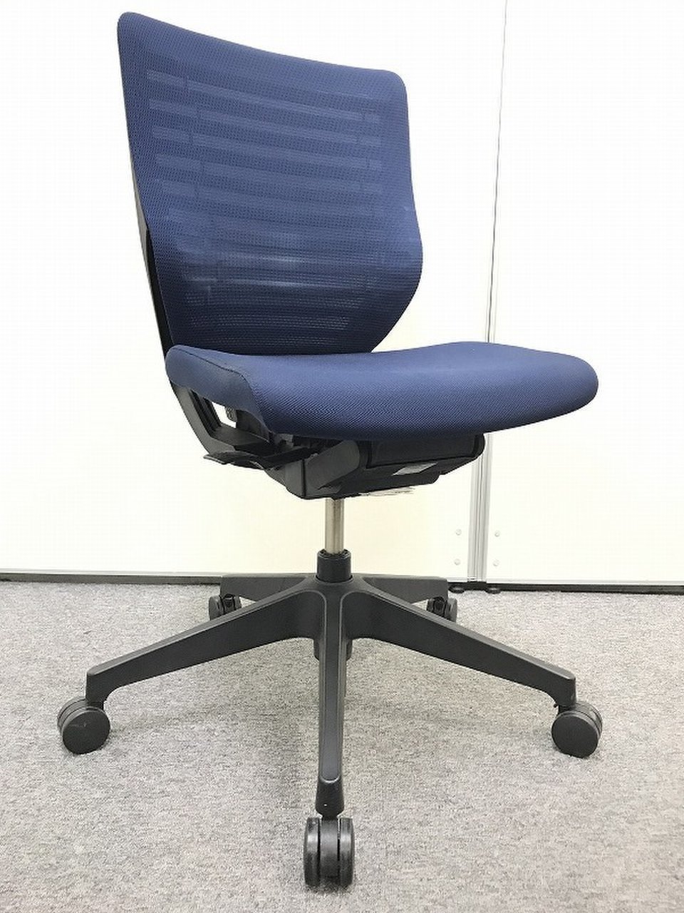 姿勢の変化をサポート!操作レスで体格にマッチする定番チェア ■イトーキ/エピオス(epios)/ネイビーブルー 肘無し ローバック ■背面クロス