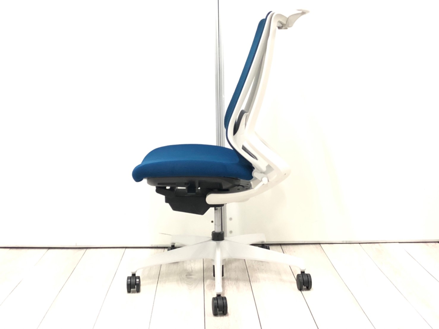 【在庫入替セール】コクヨ デュオラ 肘無しモデル クッションタイプ ブルー×ブラックフレームの定番のカラーリング コートハンガー付き ※背もたれに破れ有り【T9】