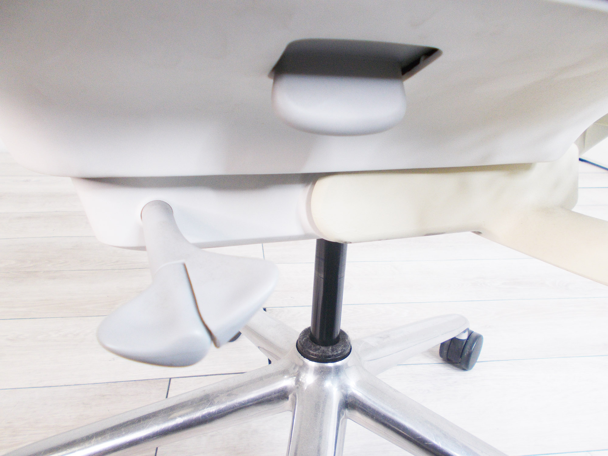 - 座ったまま、レバー操作一つで、簡単に座面を前傾できます。前傾姿勢を取ることが多いデスクワーカーに最適です。