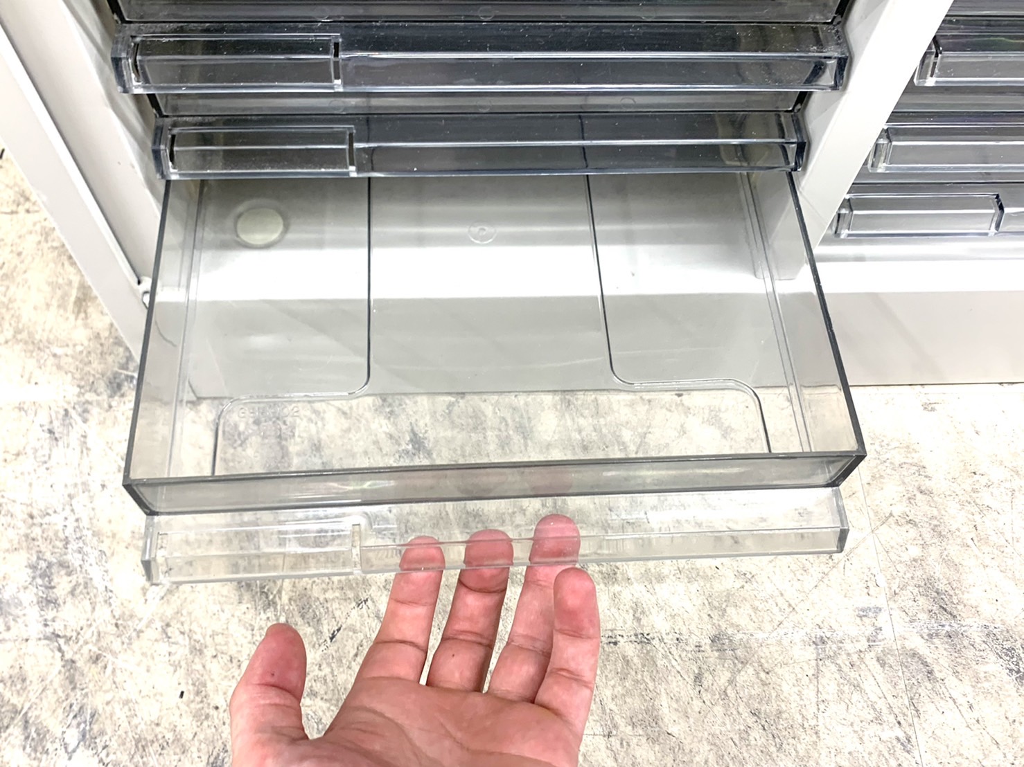 - 一部不具合ありそ引出の開閉不可、施錠不可、棚板無しといったの書庫の本来の効用を果たすための機能以外の一部が使用不可(例、扉、引出の開閉がしづらいなどがある。 )