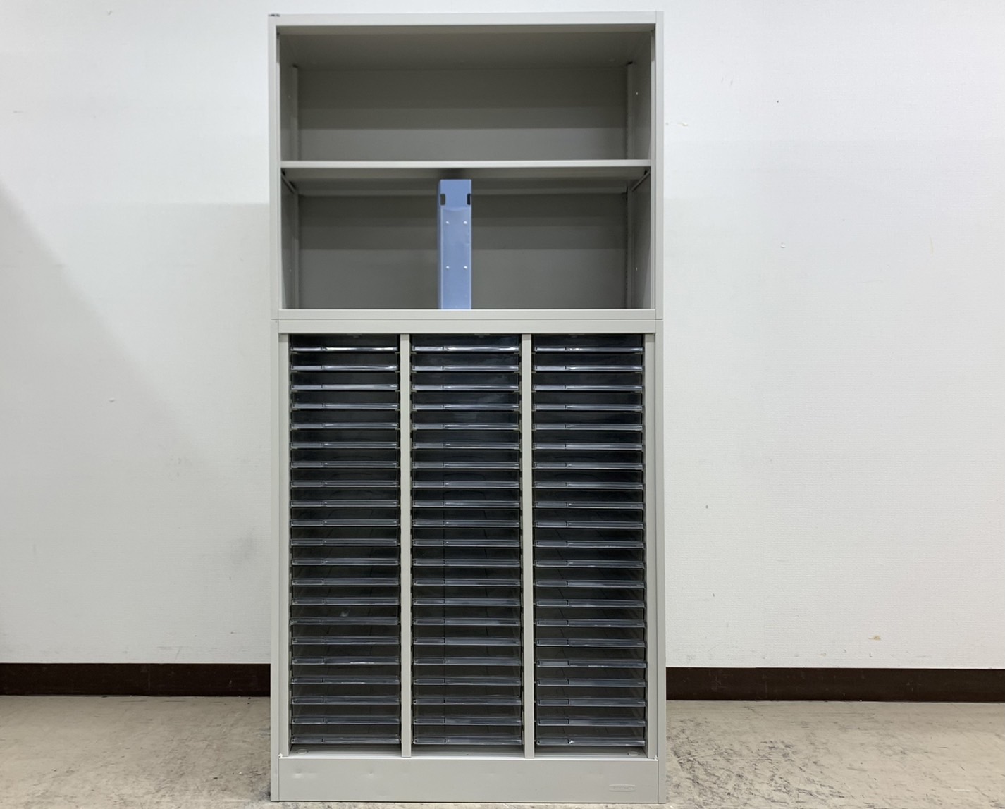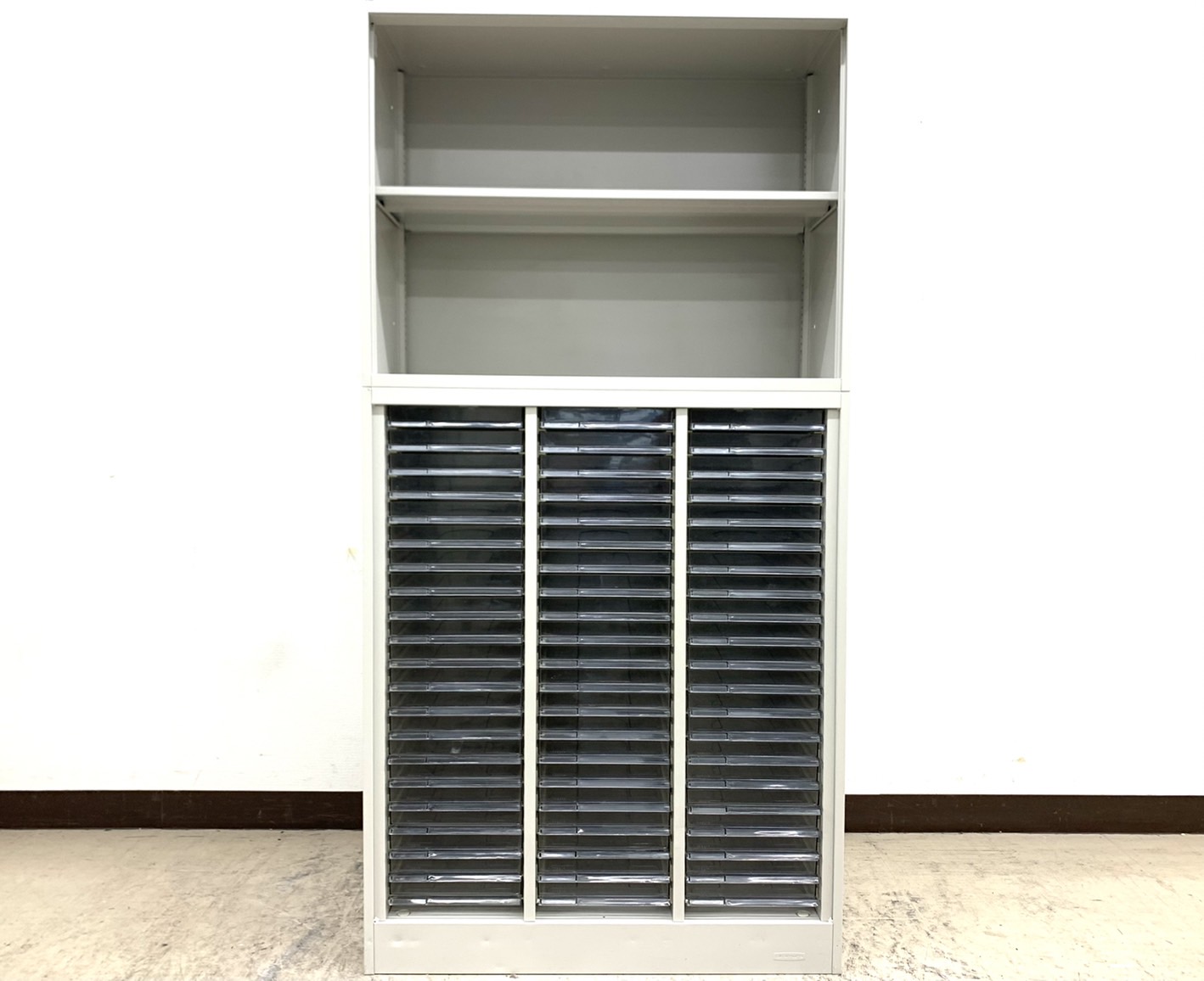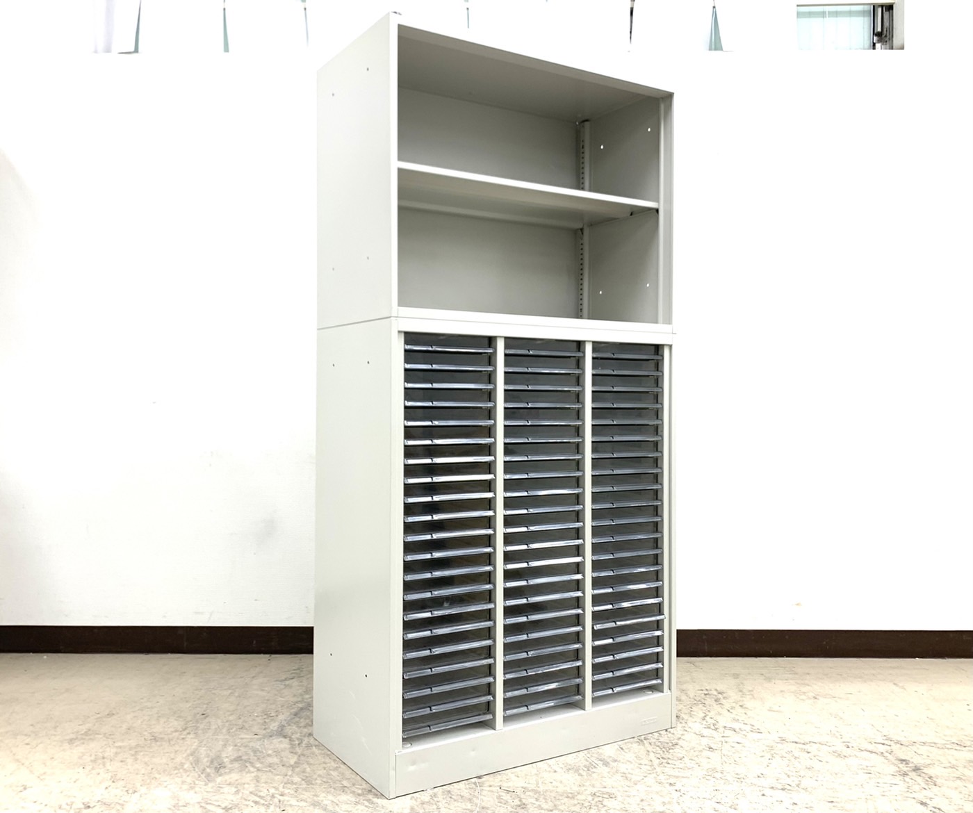 【希少品】オープン2段書庫+3列浅型引出クリスタルトレー上下書庫セット◆オカムラ製【RP】- 埼玉本店
