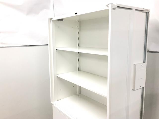 スライド式の扉+引き出しタイプの便利な書庫セットが入荷!使い勝手抜群のハイキャビネットが入荷! ■オカムラ/レクトライン/ホワイト 2枚引き戸+3段ラテラルキャビネット