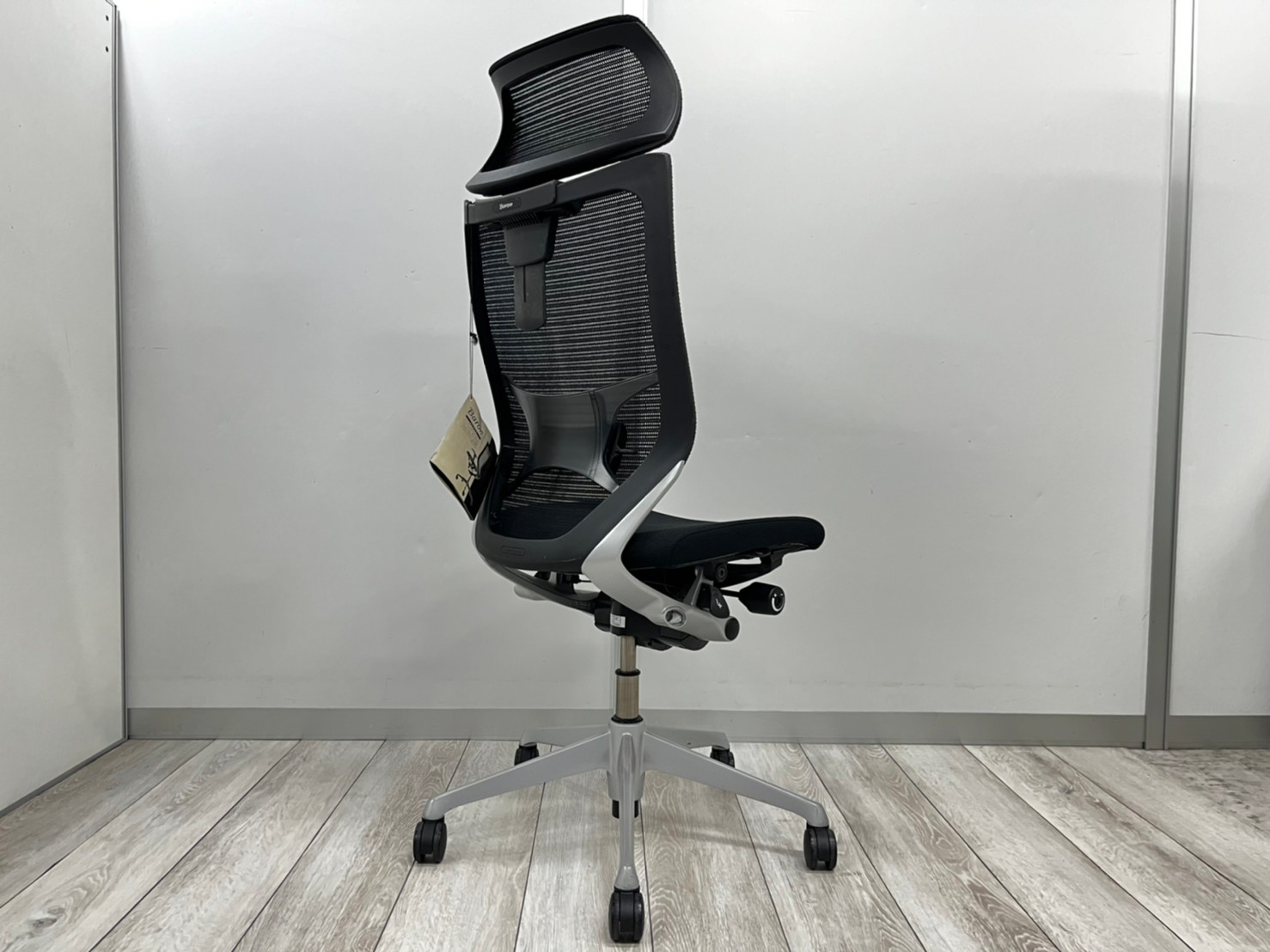 気に入っているのはリクライニング調整の自由さです。同じオカムラ社製の上位モデルや下位モデルも、角度が5段階程度の固定位置だったり、リクライニング強度も4段階だったりしますが、バロンチェアはどちらも無段階。つまり完全に好きな位置、好きな強度に調整することができます。