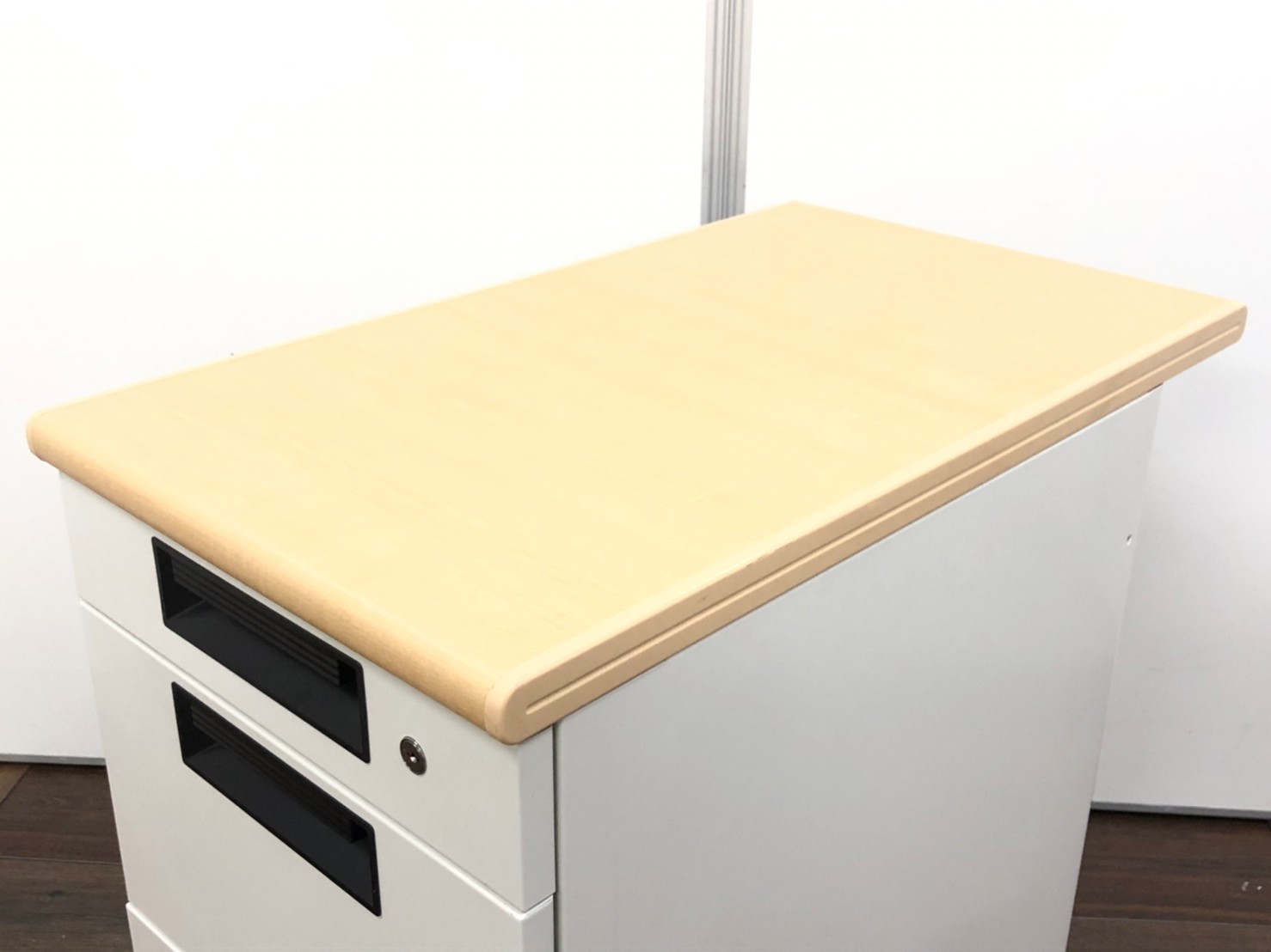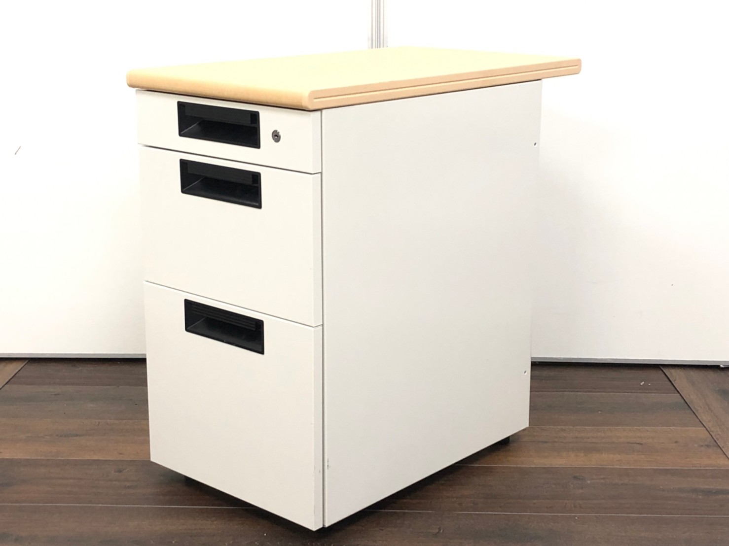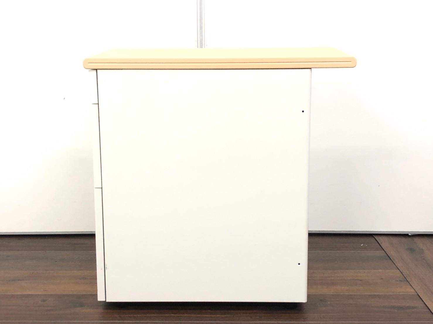【ナチュラル天板の3段脇机(袖机)】プラス/フラットライン/ナチュラル【デスクの幅が足りないときの買い増しに!】- 足立・葛飾店