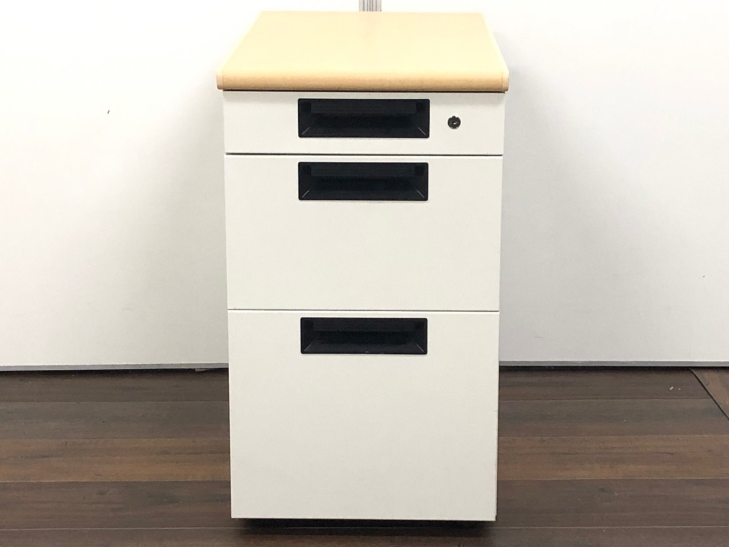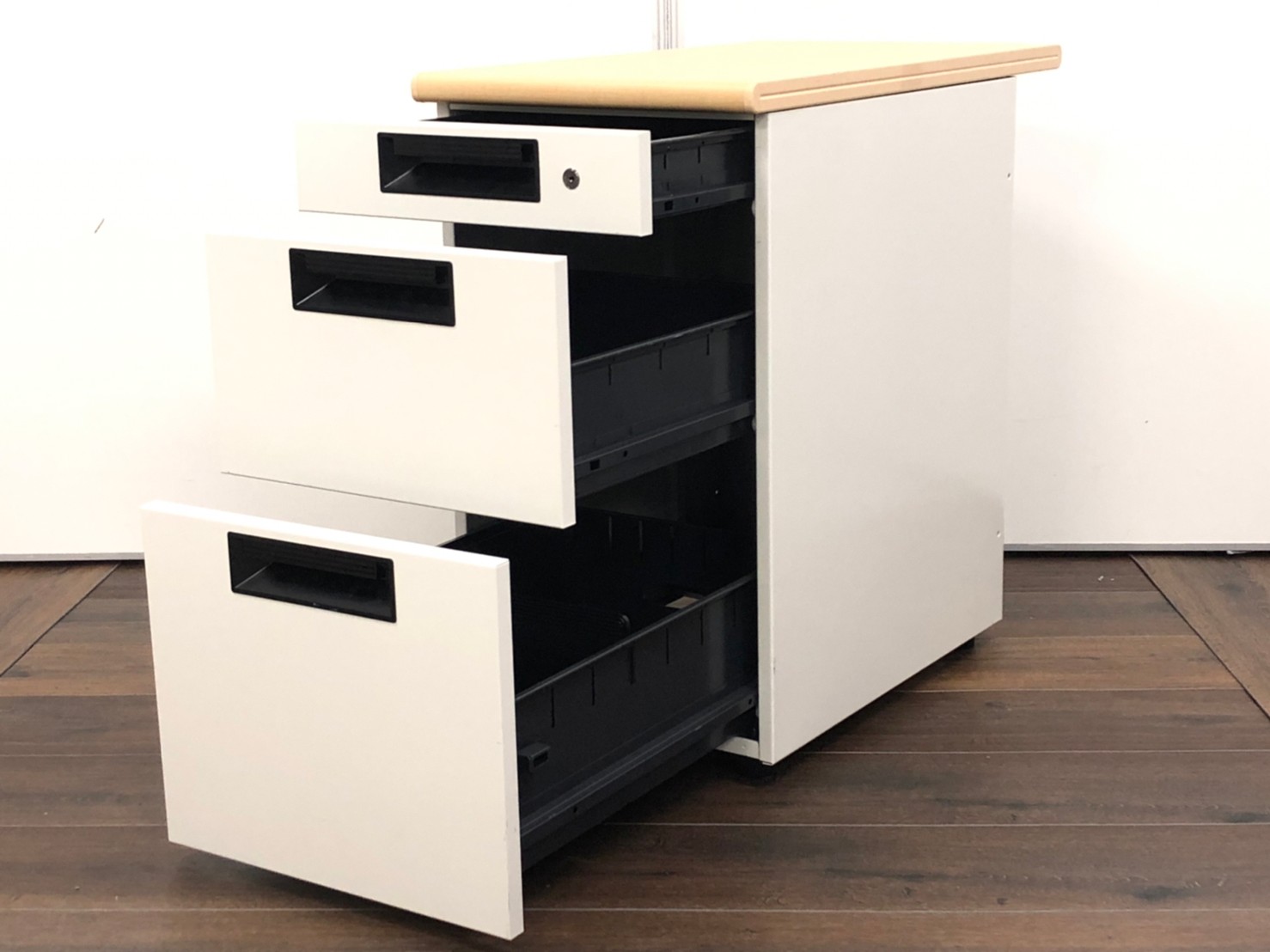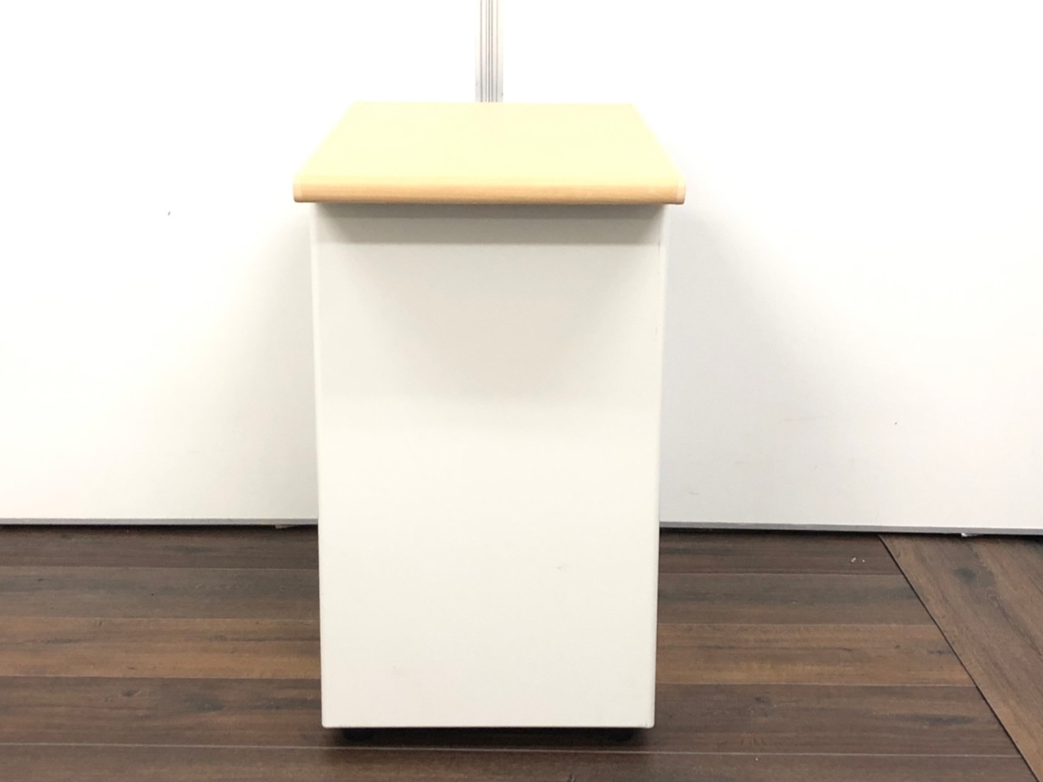 【ナチュラル天板の3段脇机(袖机)】プラス/フラットライン/ナチュラル【デスクの幅が足りないときの買い増しに!】- 足立・葛飾店