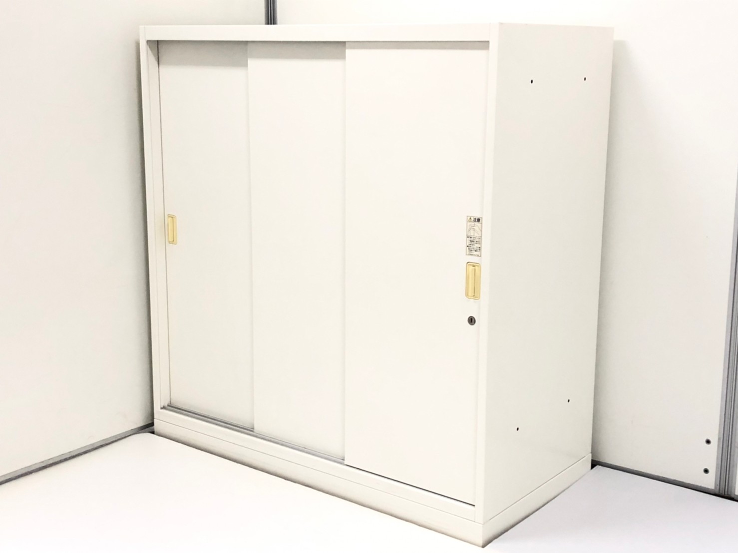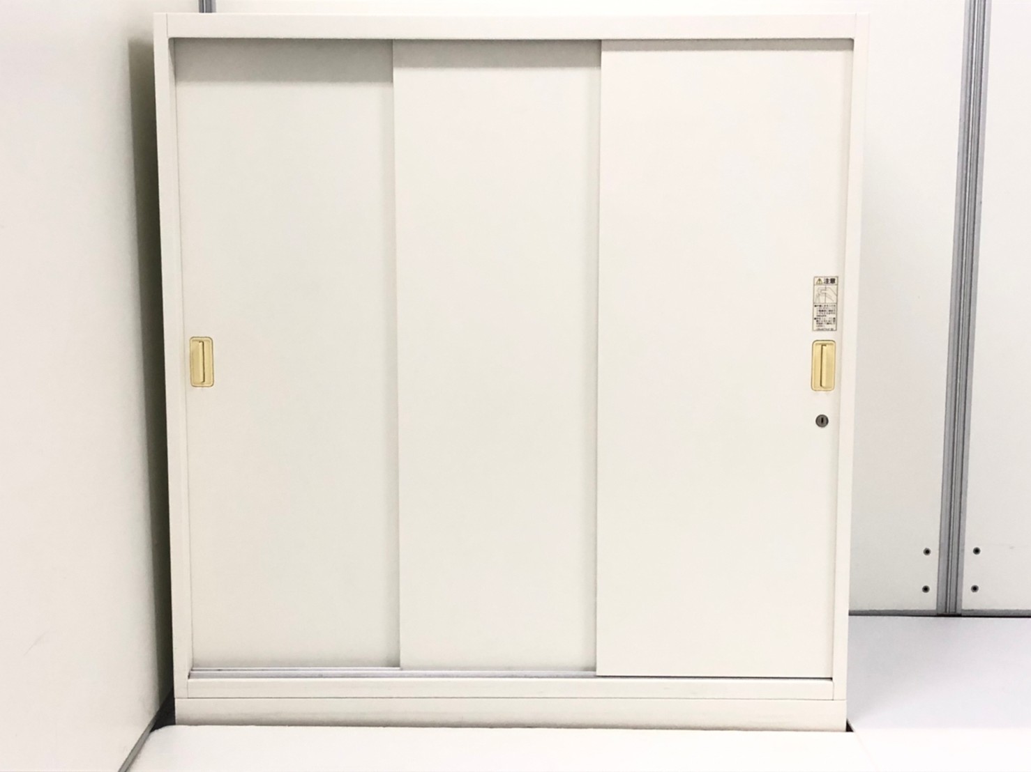 【レア】オカムラ製 レクトライン ホワイト シリンダー W800xD450xH1100 W800サイズ 3枚引戸 3枚引き違い書庫!!