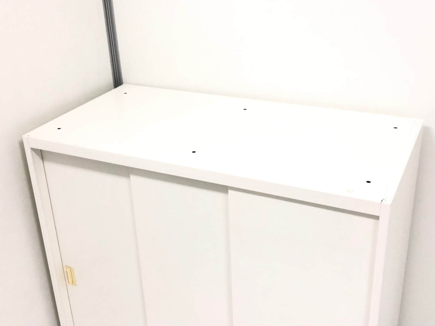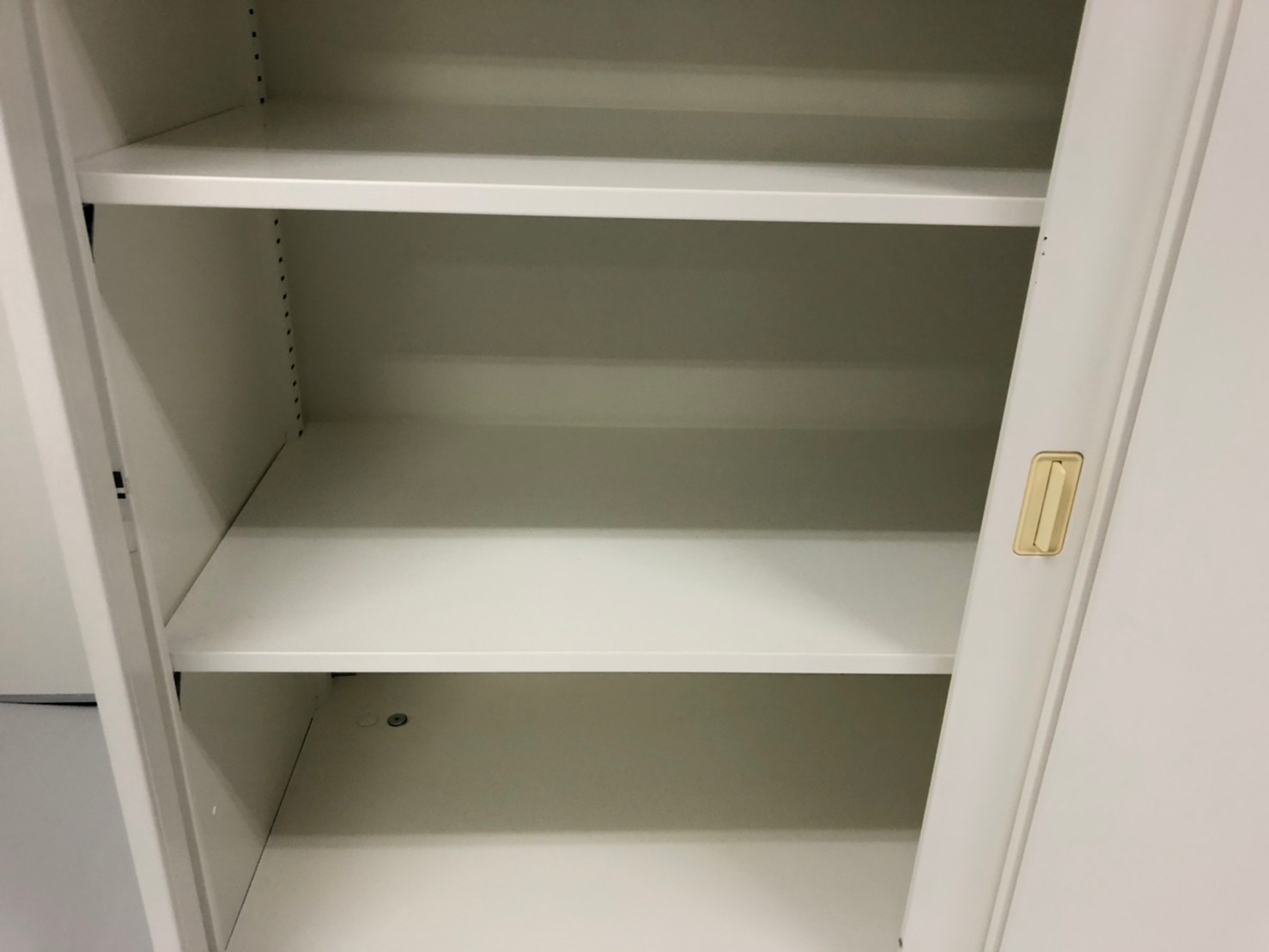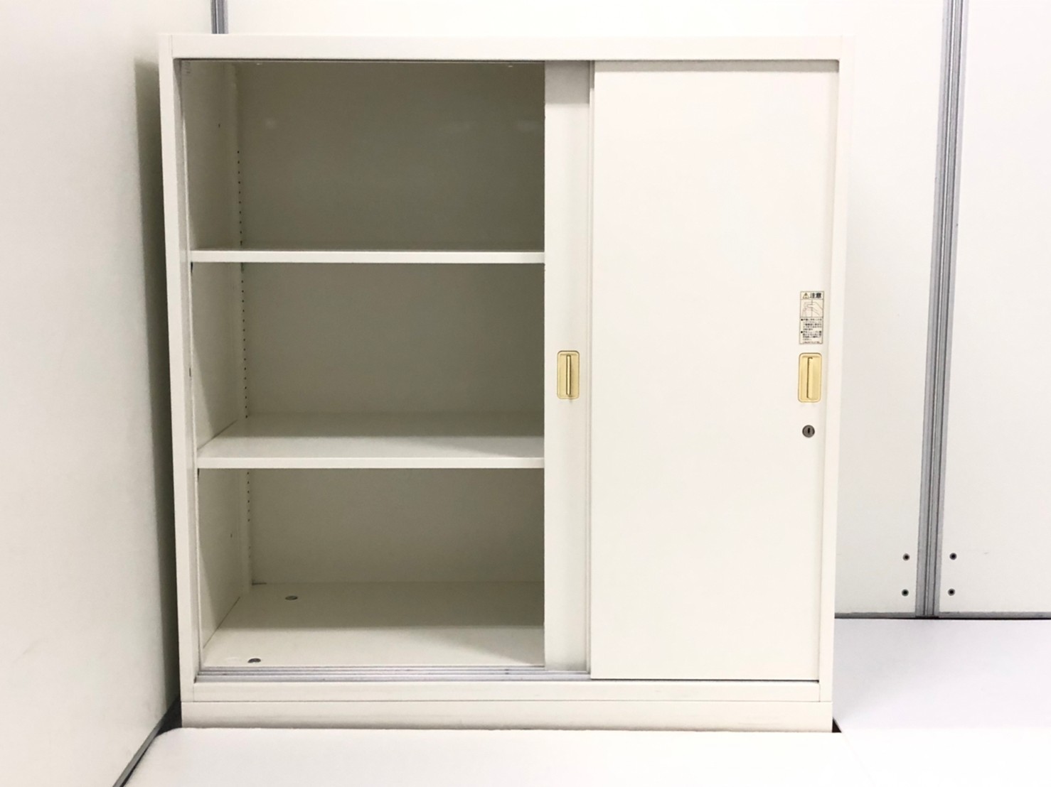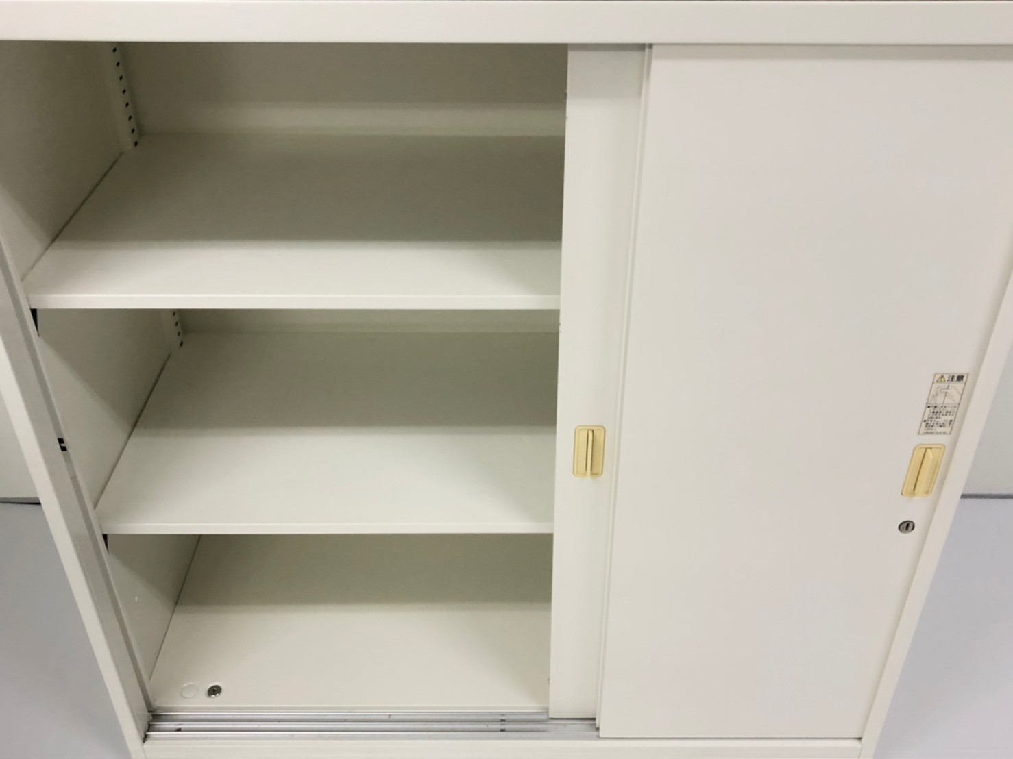 2枚引き戸書庫 オカムラ レクトライン 鍵付き シリンダー錠 ホワイト 天板無し スライド式の扉のため導線を邪魔しません