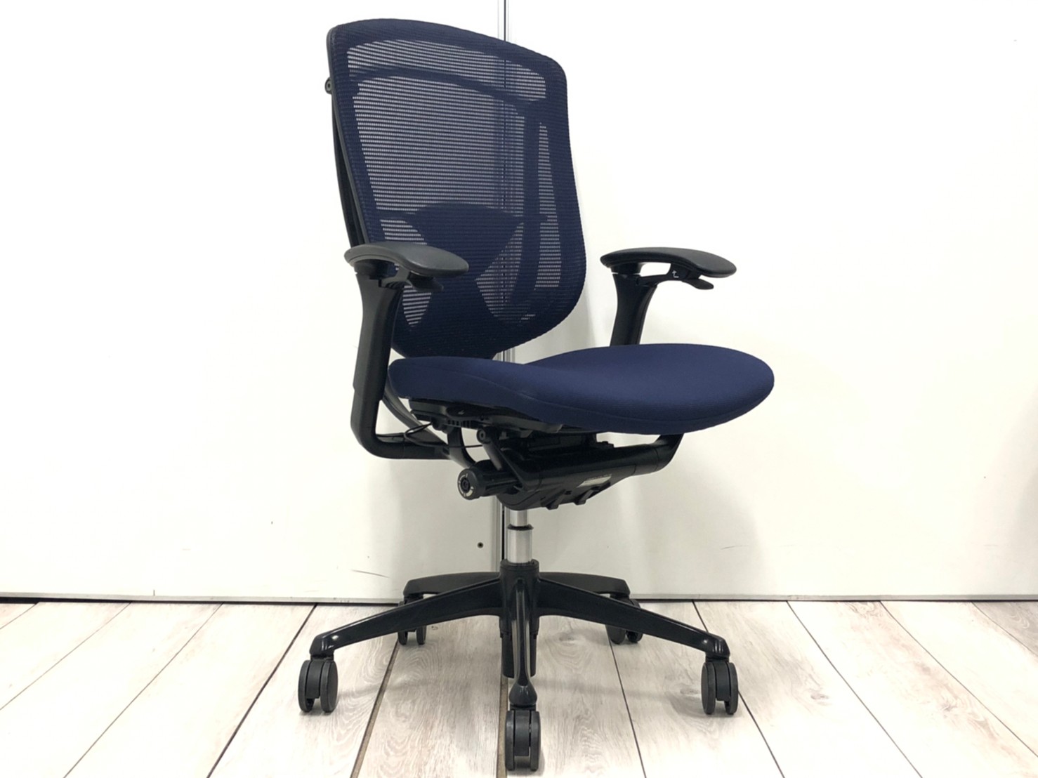 世界で認められた革新的な大人気オフィスチェアが入荷!肘掛部分で調整が可能なスマートオペレーション搭載!他では得られない最高級の座り心地を! ■オカムラ/コンテッサ/ダークブルー×ネオブラックボディ 背メッシュ/座クッションタイプ 可動肘【2507】弊社使用欄【A01025837】