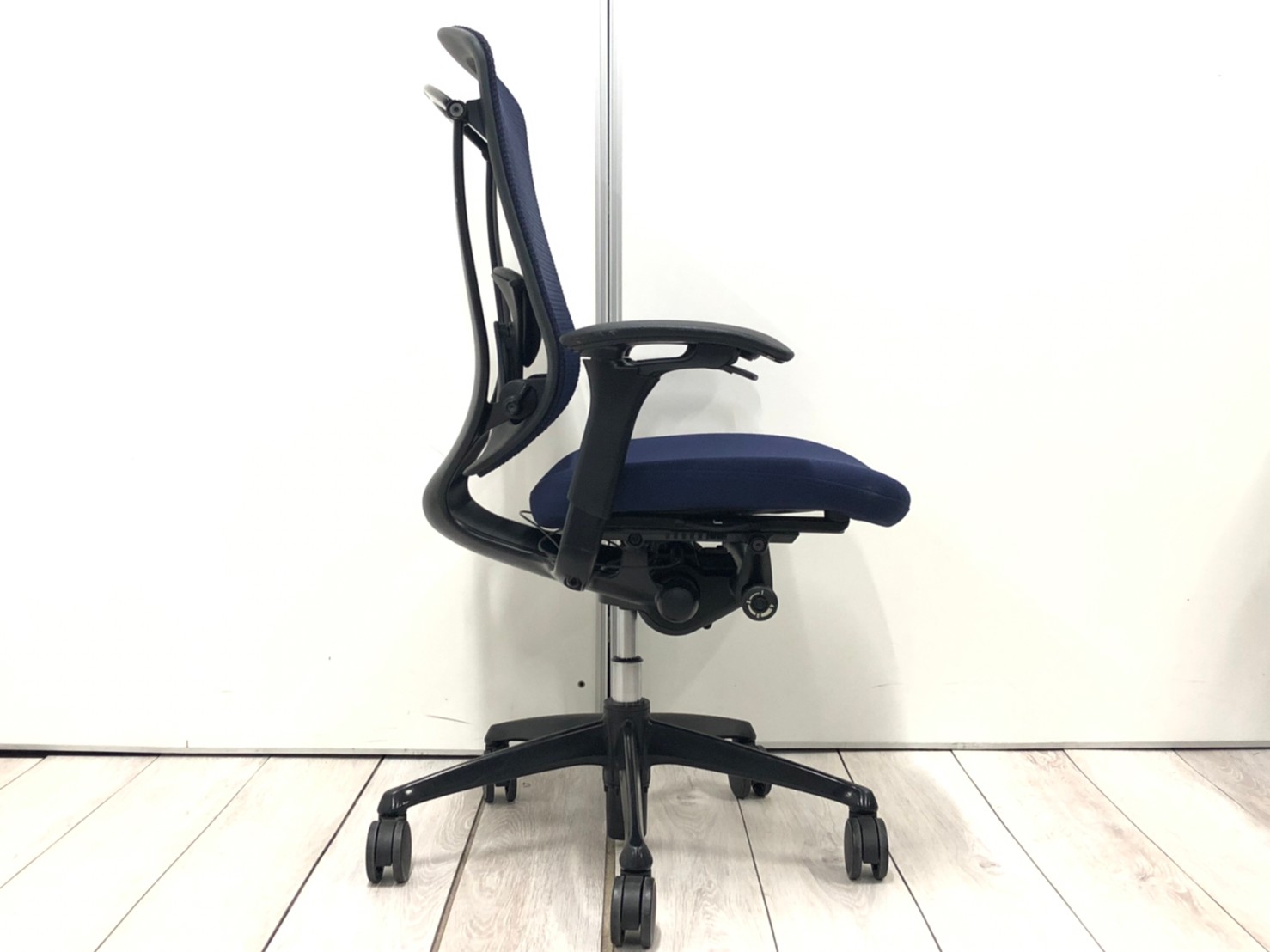 【訳あり品】世界で認められた革新的な大人気オフィスチェアが入荷!肘掛部分で調整が可能なスマートオペレーション搭載!他では得られない最高級の座り心地を!【在庫入替セール品!】 ■オカムラ/コンテッサ/ダークブルー×ネオブラックボディ 背メッシュ/座クッションタイプ 可動肘 上下昇降不可