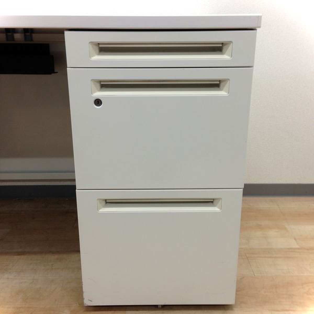 【ハイクオリティデスク入荷!】■オカムラ製 両袖デスク W1400mm ホワイト ■広々と使える!収納スペース充実!- 品川・三田店