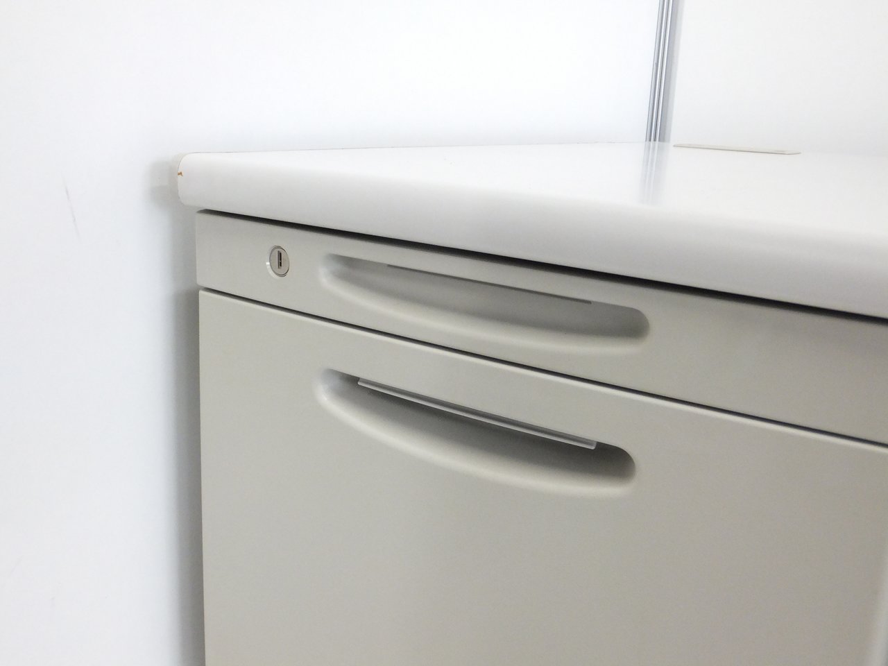 上長席・役員向けサイズ オカムラ SDデスクシステム 両袖机 定番のW1400サイズ 汚れの目立ちにくいニューグレー 鍵付き シリンダー錠