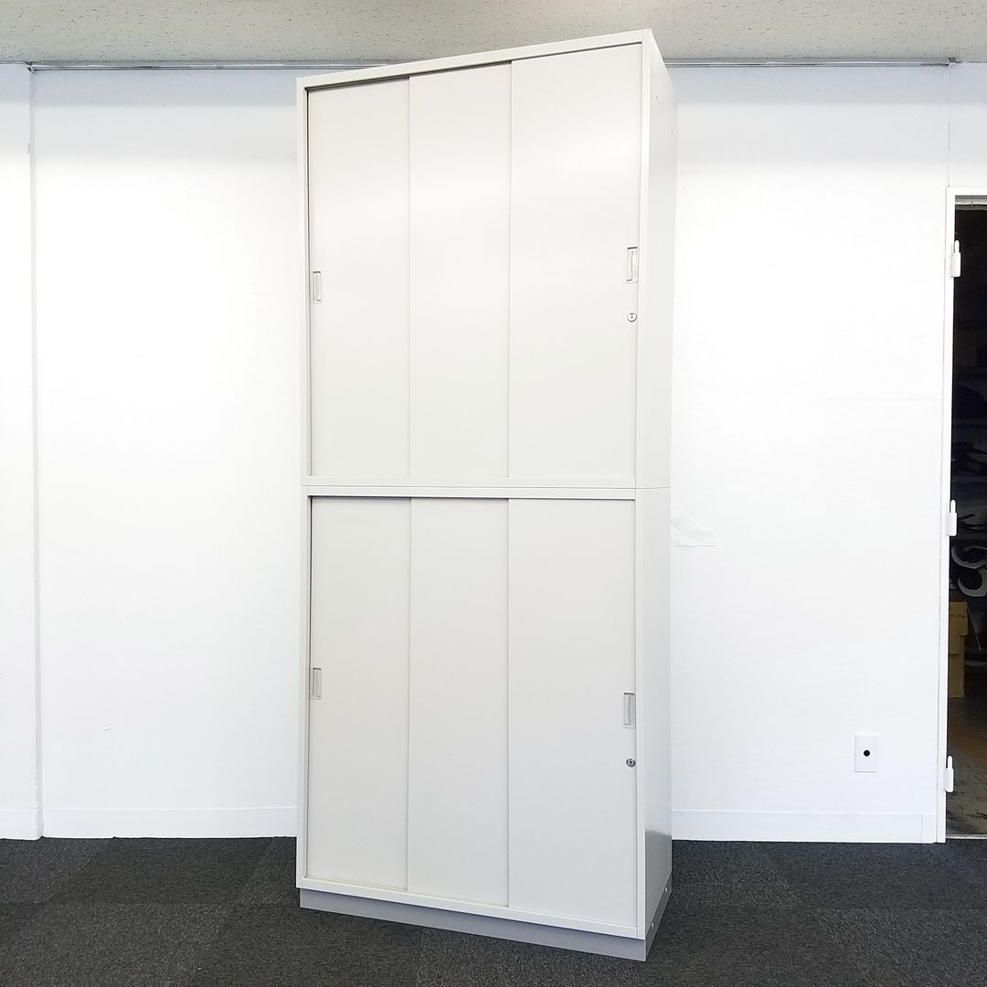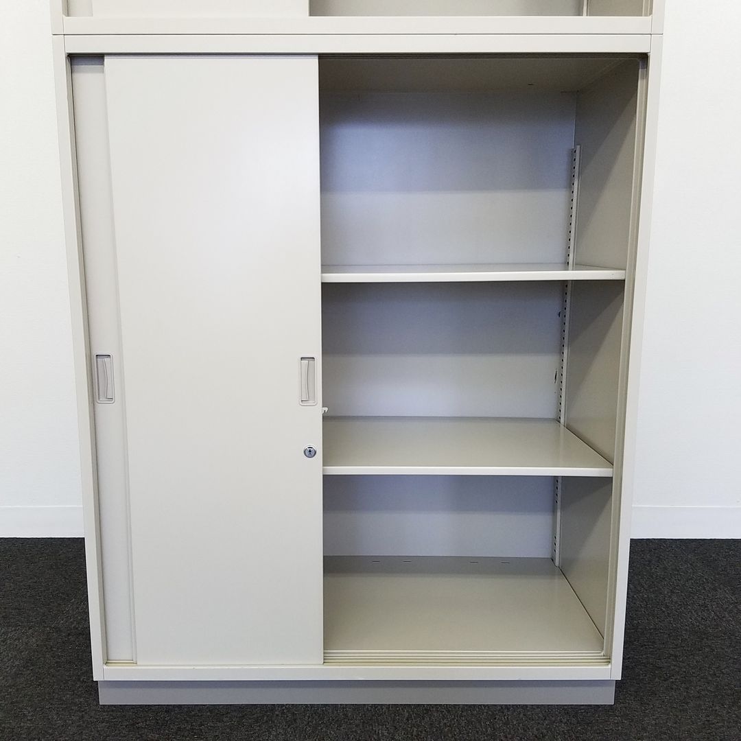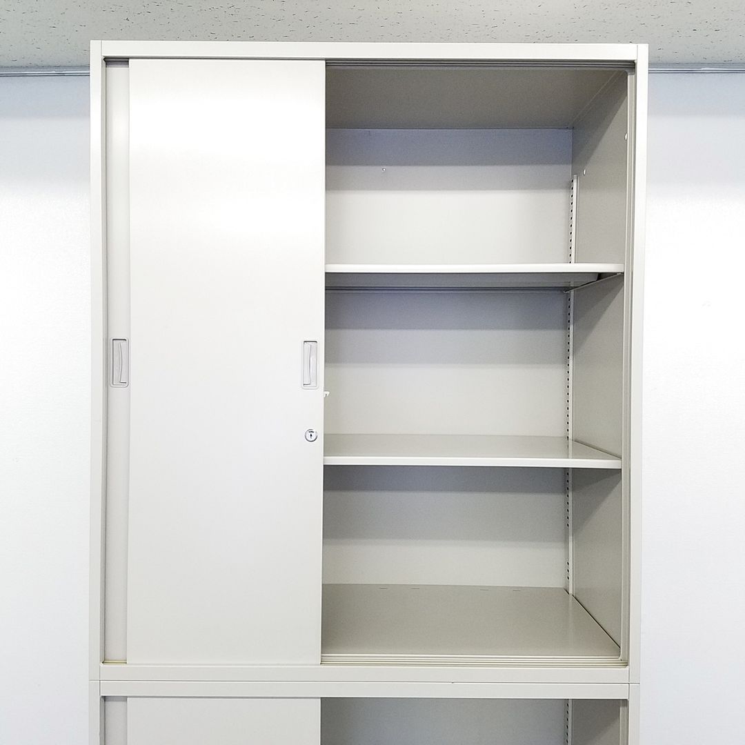 【3台入荷】定番シリーズのシンラインの書庫セット入荷!人気のニューグレー色です!中古 ホワイト 書庫 オフィス 家具 レイアウト イトーキ シンライン 棚 キャビネット 3枚引き違い上下書庫- 豊中・尼崎店