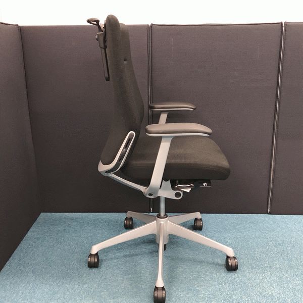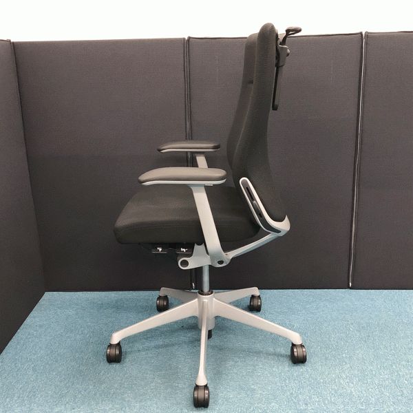 【先行商品!】【機能性抜群の人気チェア!自然な姿勢をサポートするアンクルチルトリクライニング搭載!】■オカムラ(okamura)製 コーラルチェア(Choral) 肘付 エクストラハイバックチェア ファブリックタイプ ■可動肘・ヘッドレスト付 ■ブラック