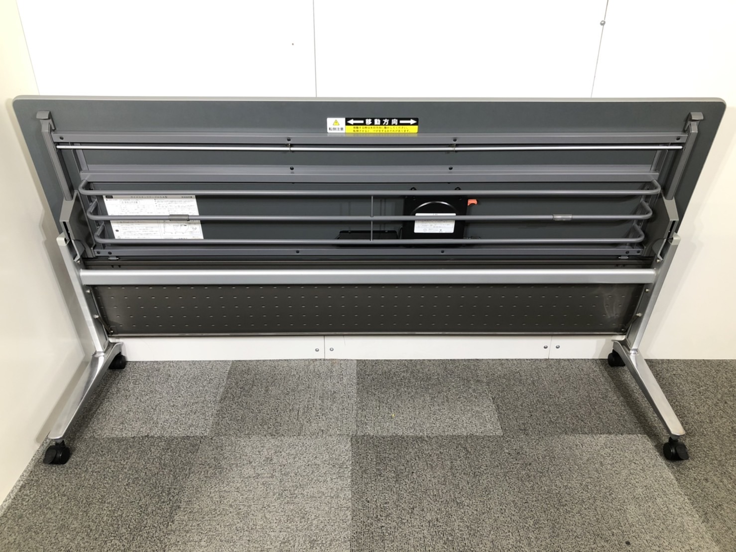 - 一部不具合あり天板歪み、アジャスター無し、キャスター使用不可ようなそのテーブルの本来の効用を果たすための機能以外の一部が使用不可な状態。(例、キャスターロッ ク機能使用不可、棚板無し等がある。)