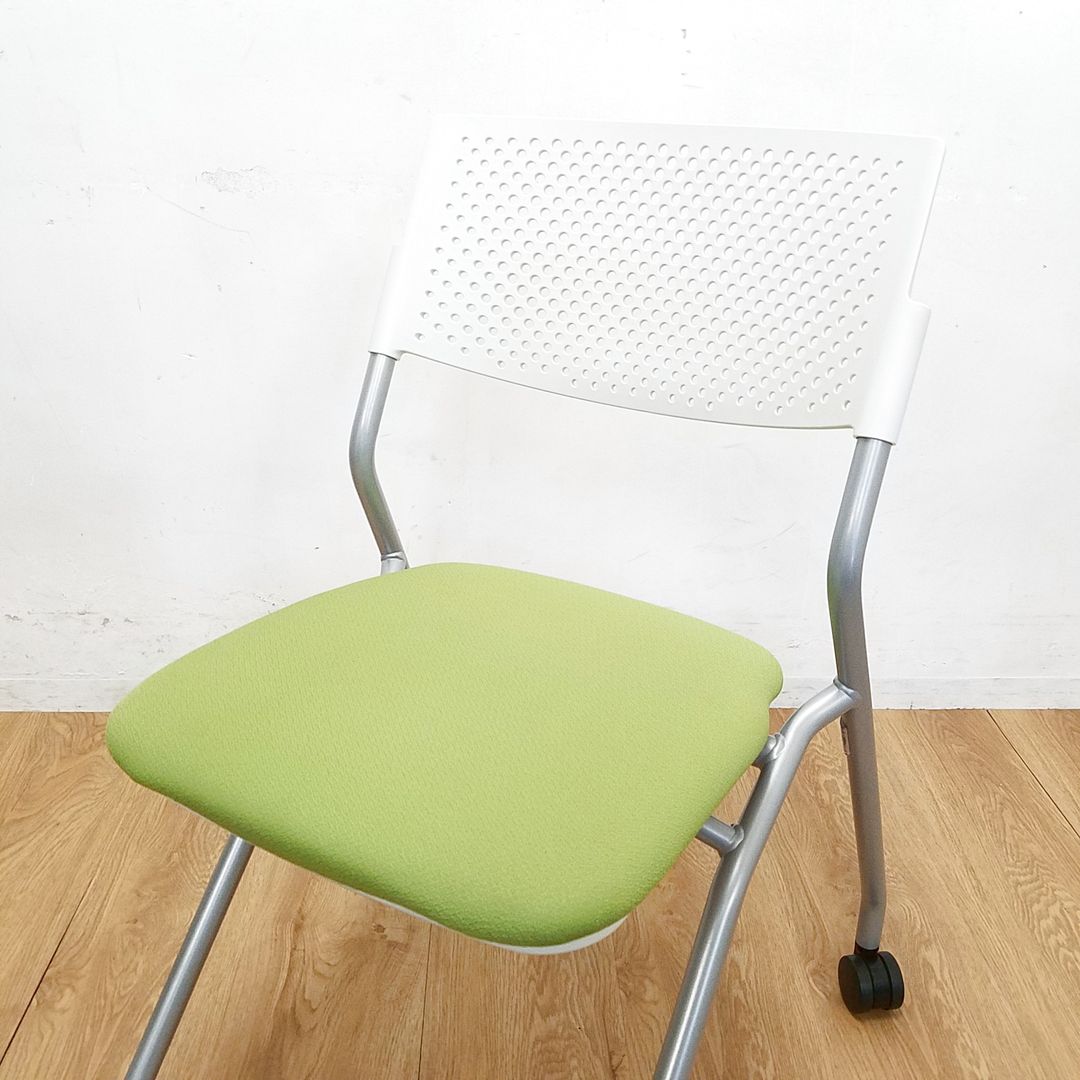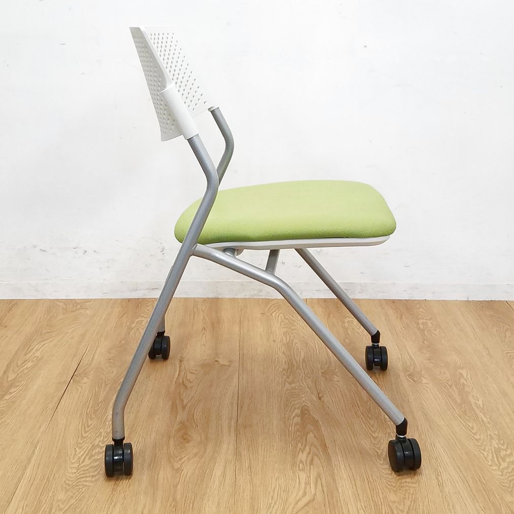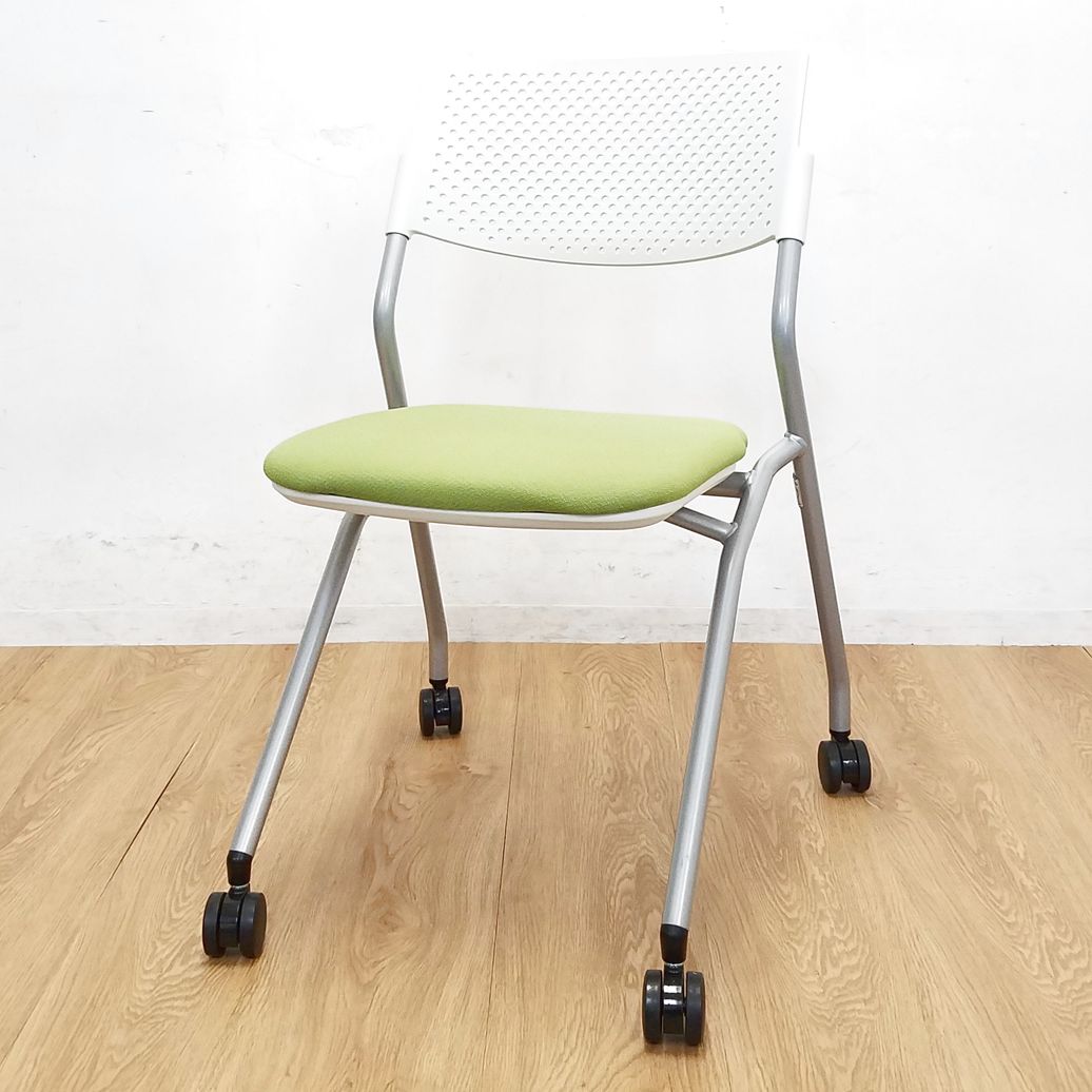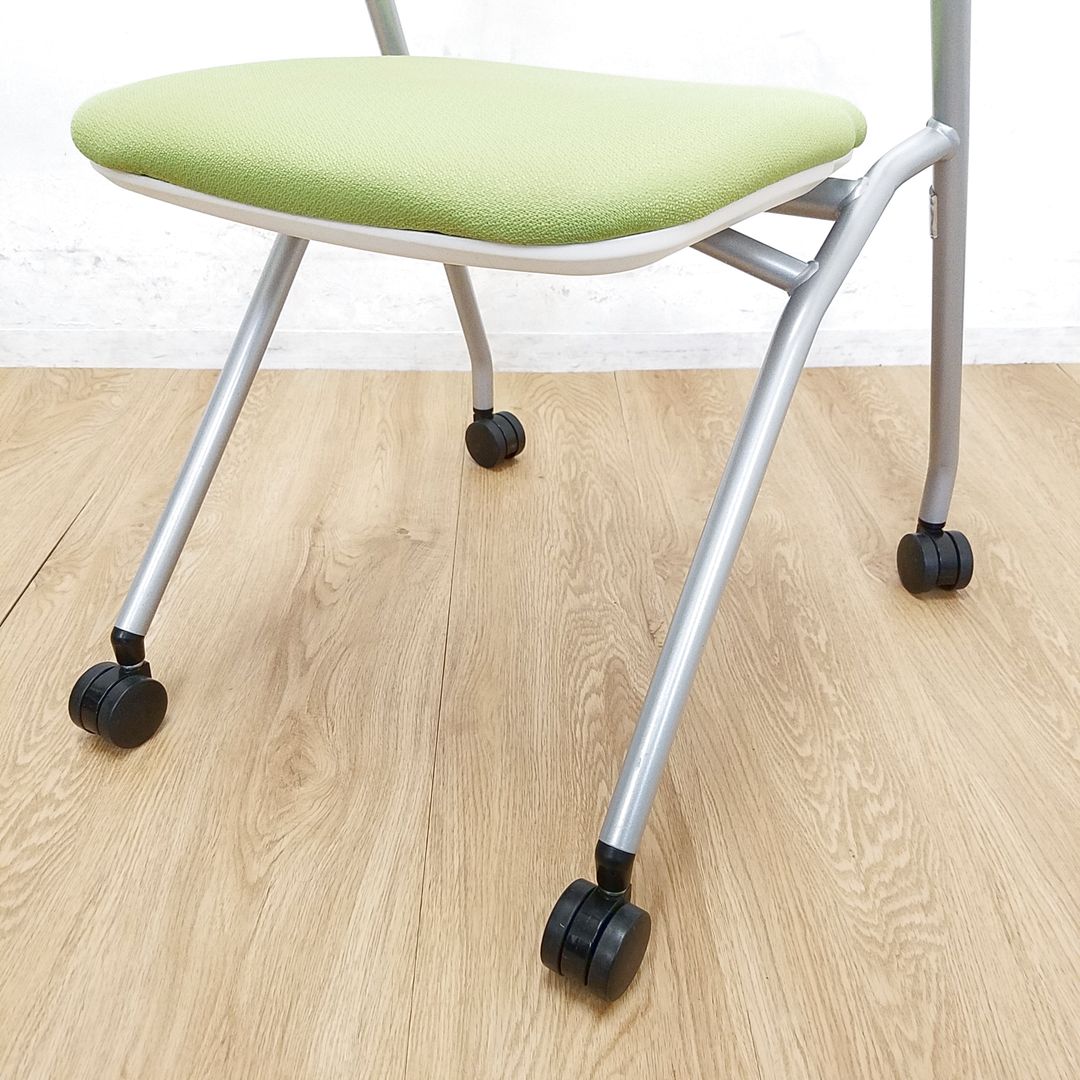 【1脚限定】コンパクト設計のミーティングチェア入荷!中古 ネスティング チェア 会議 セミナー オフィス FM-265 モスグリーン- 大阪・堺店