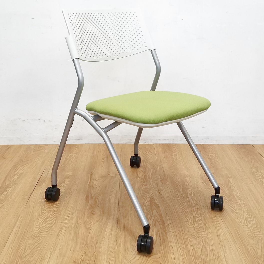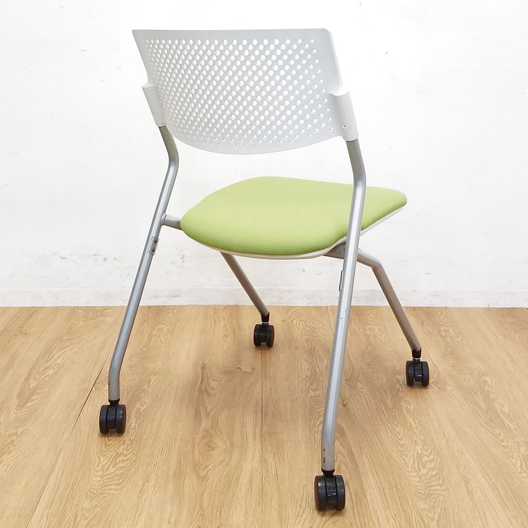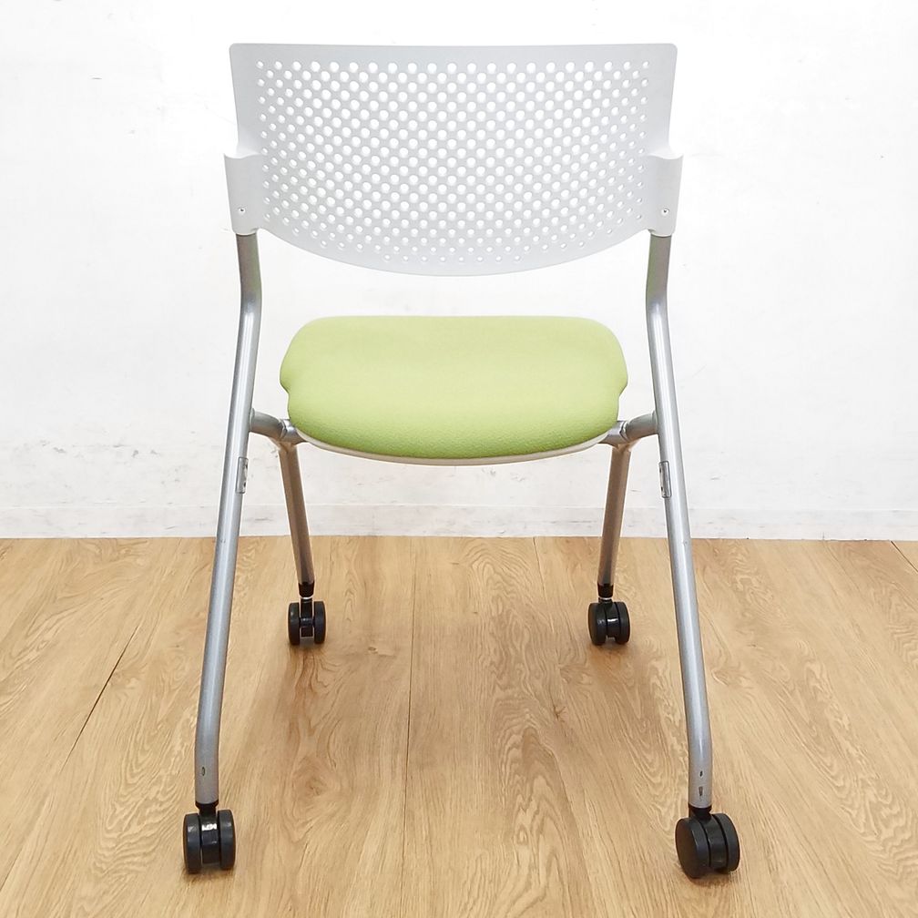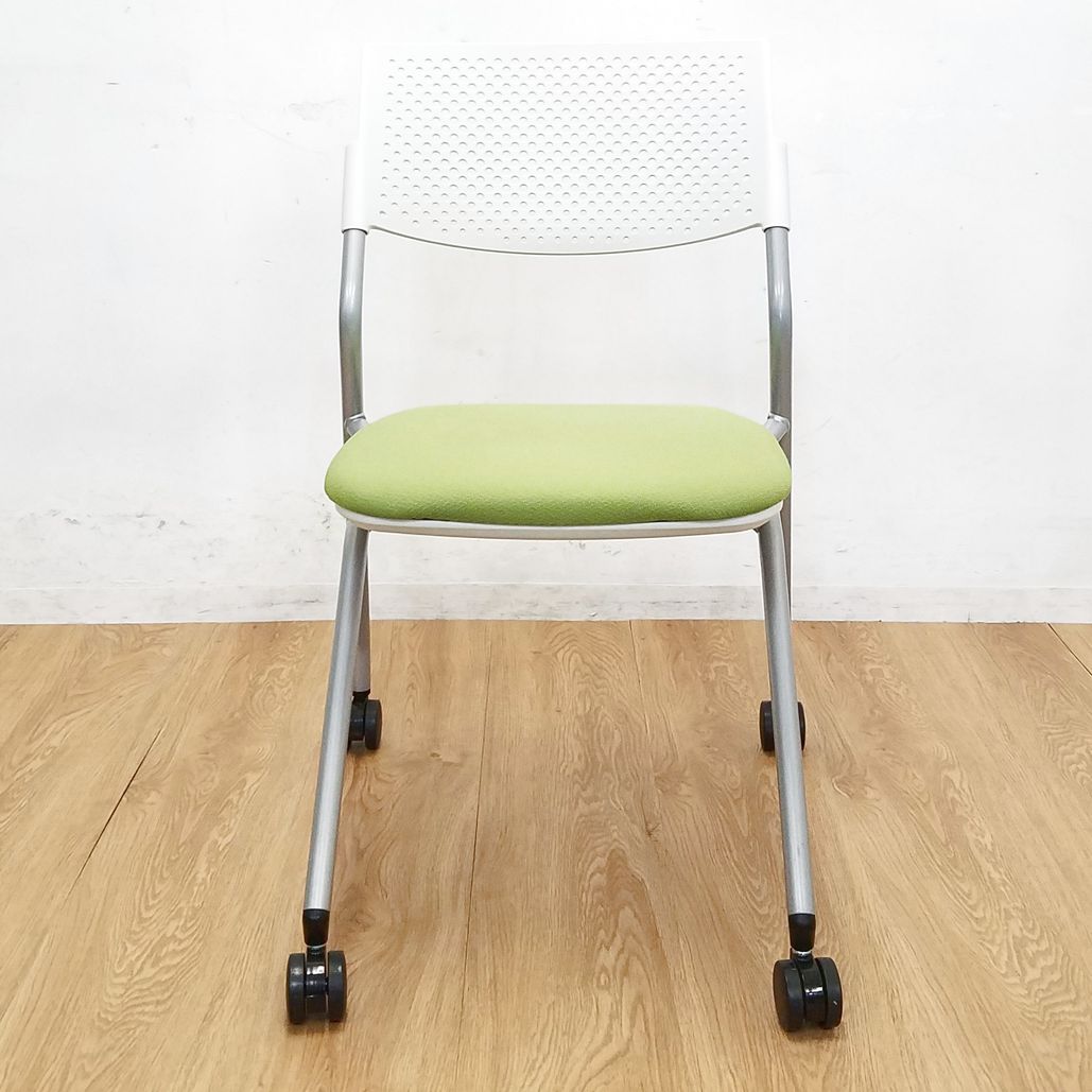 【1脚限定】コンパクト設計のミーティングチェア入荷!中古 ネスティング チェア 会議 セミナー オフィス FM-265 モスグリーン- 大阪・堺店