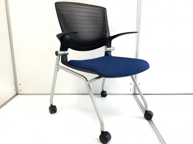 【KS】【スタイリッシュで快適な座り心地!】■オカムラ製 グラータシリーズ ネスティングチェア ブルー【平行スタッキング】サーキュラーバリューCO2削減量の算出について