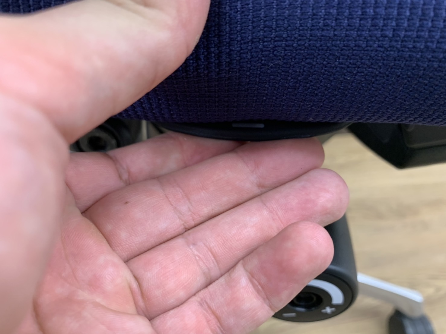 気に入っているのはリクライニング調整の自由さです。同じオカムラ社製の上位モデルや下位モデルも、角度が5段階程度の固定位置だったり、リクライニング強度も4段階だったりしますが、バロンチェアはどちらも無段階。つまり完全に好きな位置、好きな強度に調整することができます。