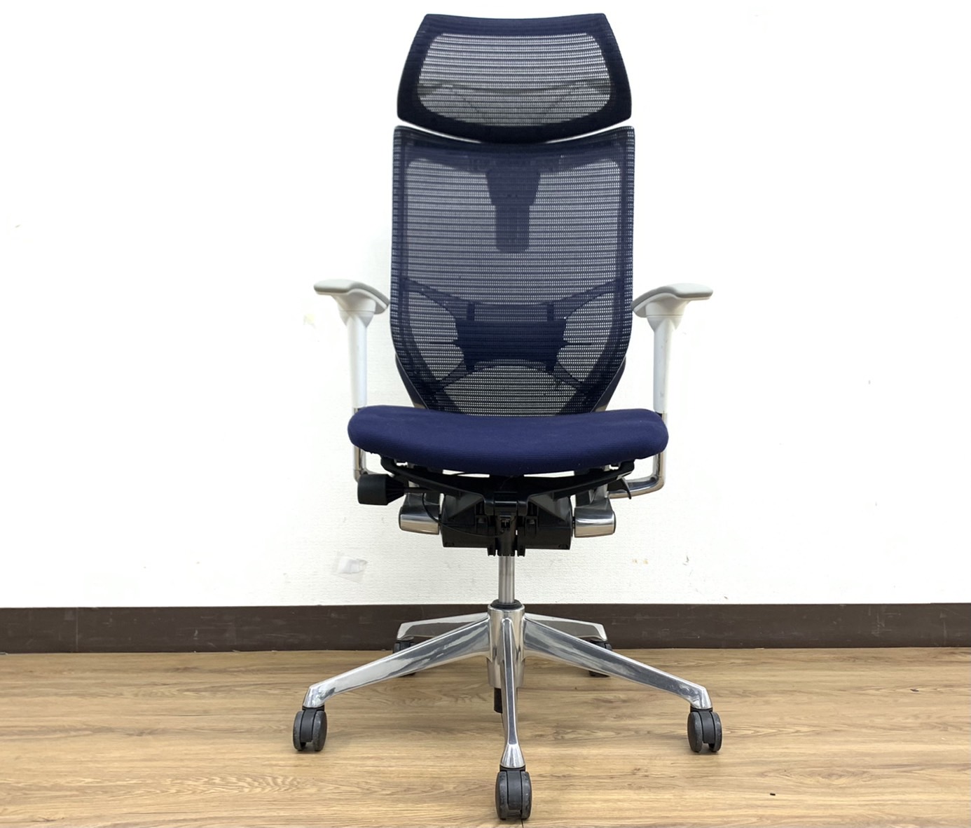 【2017年製Aランク品】ネイビーアタック!バロン(Baron)チェア座面クッションタイプ※ハンガー&ランバーサポート付きポリッシュフレーム◆オカムラ製【RP】- 埼玉本店
