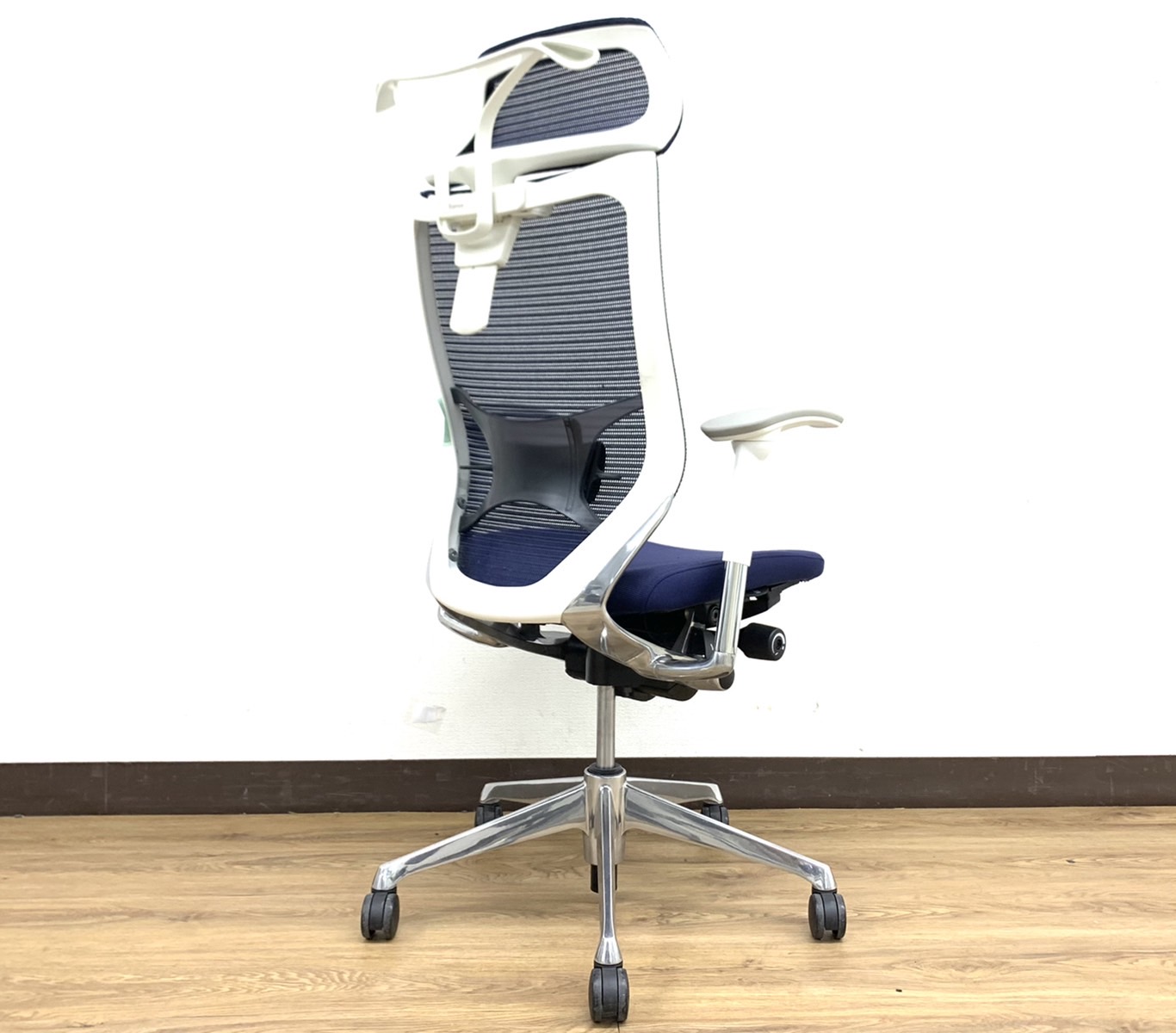 【新品ヘッドレスト付き】オカムラ/バロン/ブルー×ホワイト/可動肘/座面クッション【AD】