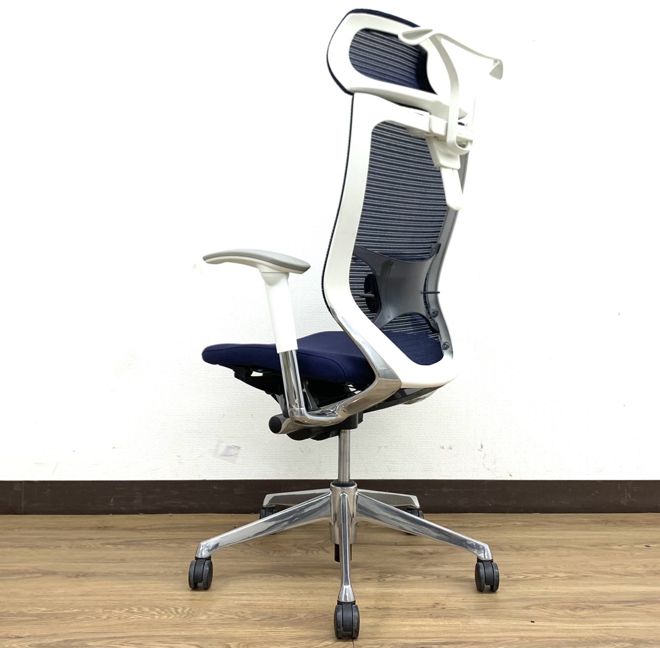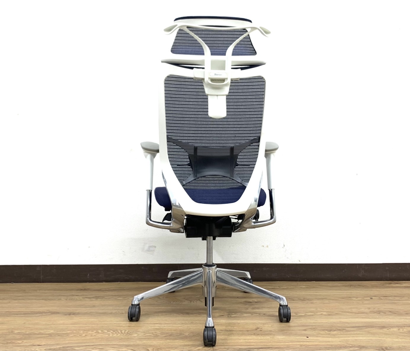 【オフィスの執務室、会議室におすすめ!】■オカムラ(okamura)製 バロン(Baron)チェア 肘付き ハイバック 背面メッシュ ■可動肘 ■ダークブルー × ホワイトシェル【硬めの座面が大人気!国産メッシュチェアの代表格!】【状態良好品!】