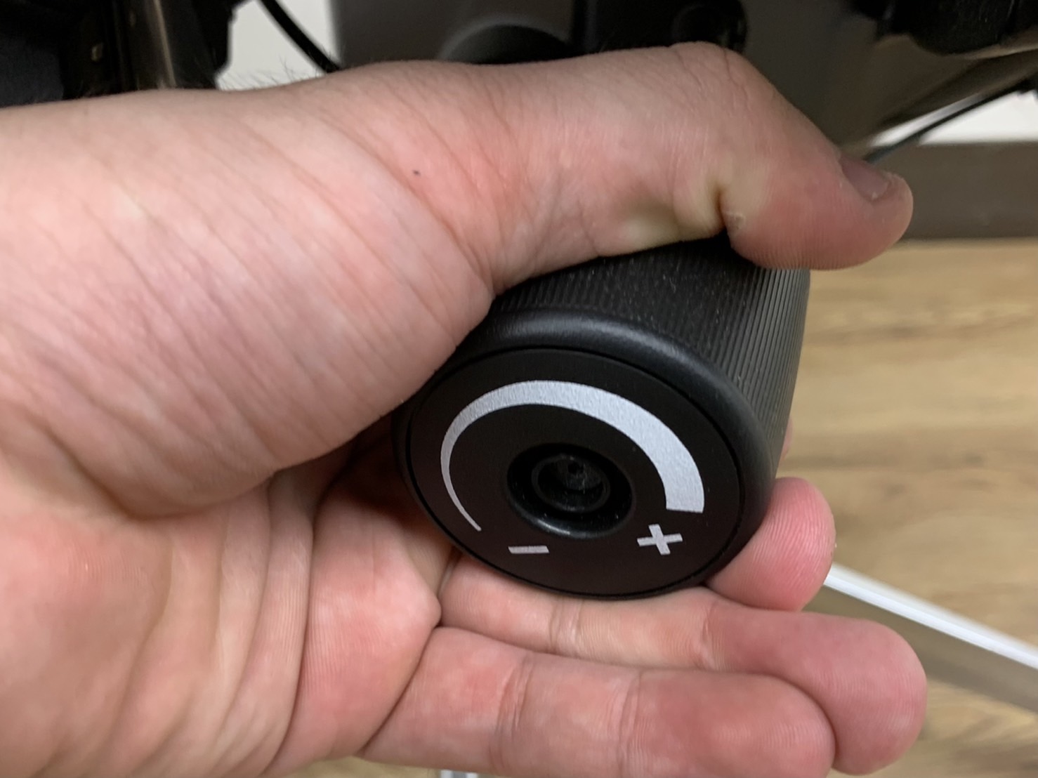 右手を自然に下ろした位置にあるダイヤルでお好みの強さに調整できます。