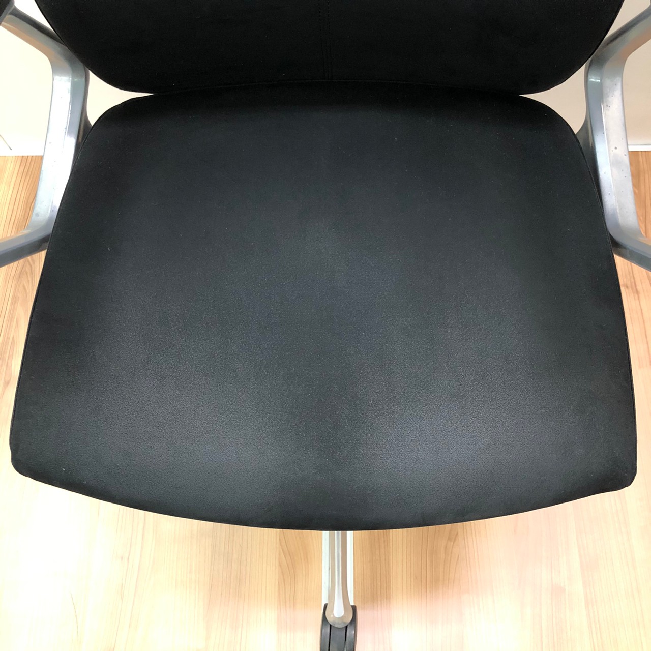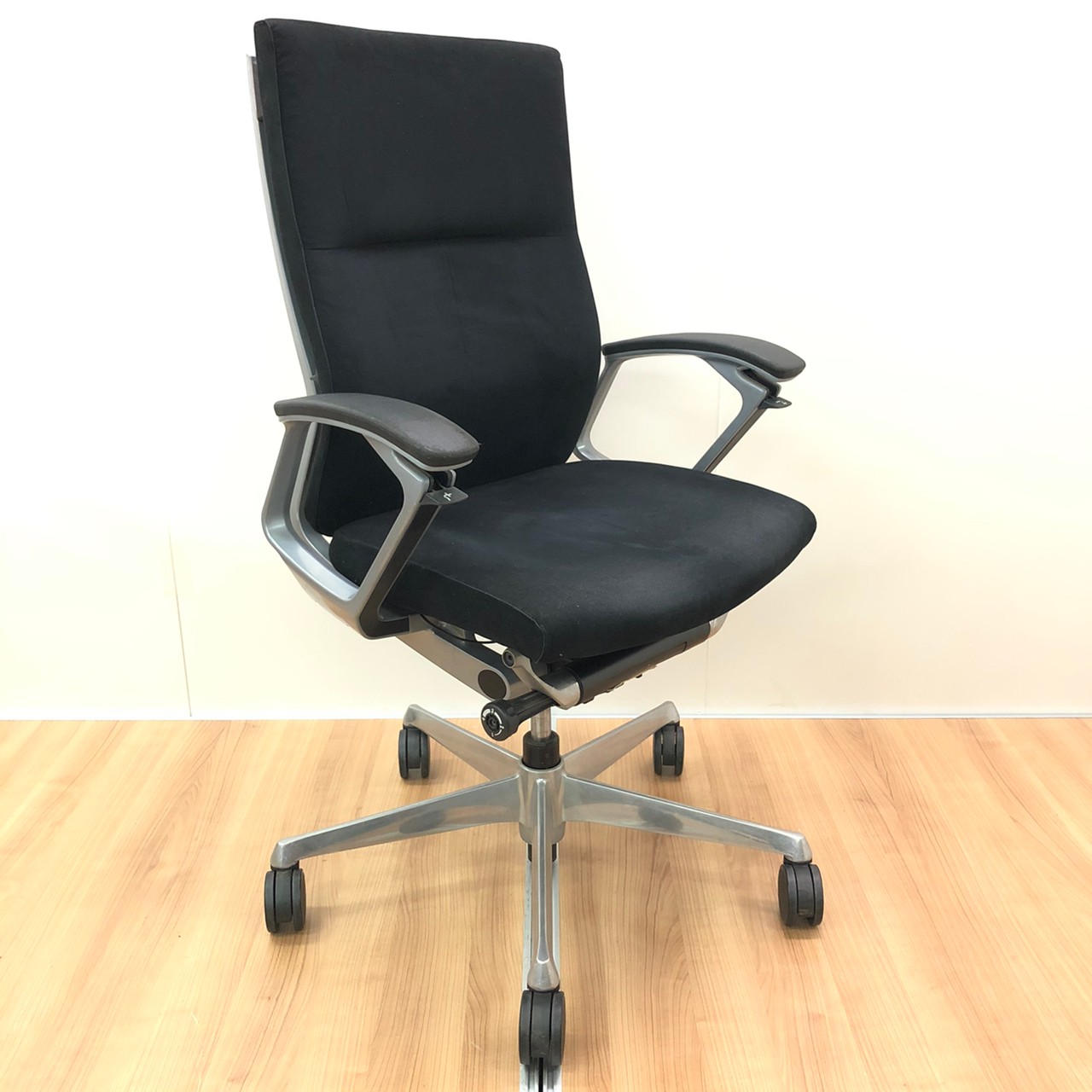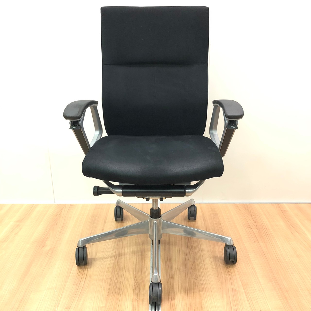 ※ひじ掛け部分に使用感ありのため、特価!【オカムラの最上級モデル!高級感と機能性を融合させたチェア!】■ハイバック 肘付き 背・座クロス張地(スエード調) 固定肘 ※サイド剥がれ有り ランバーサポート付き ブラック/オカムラ/デューク