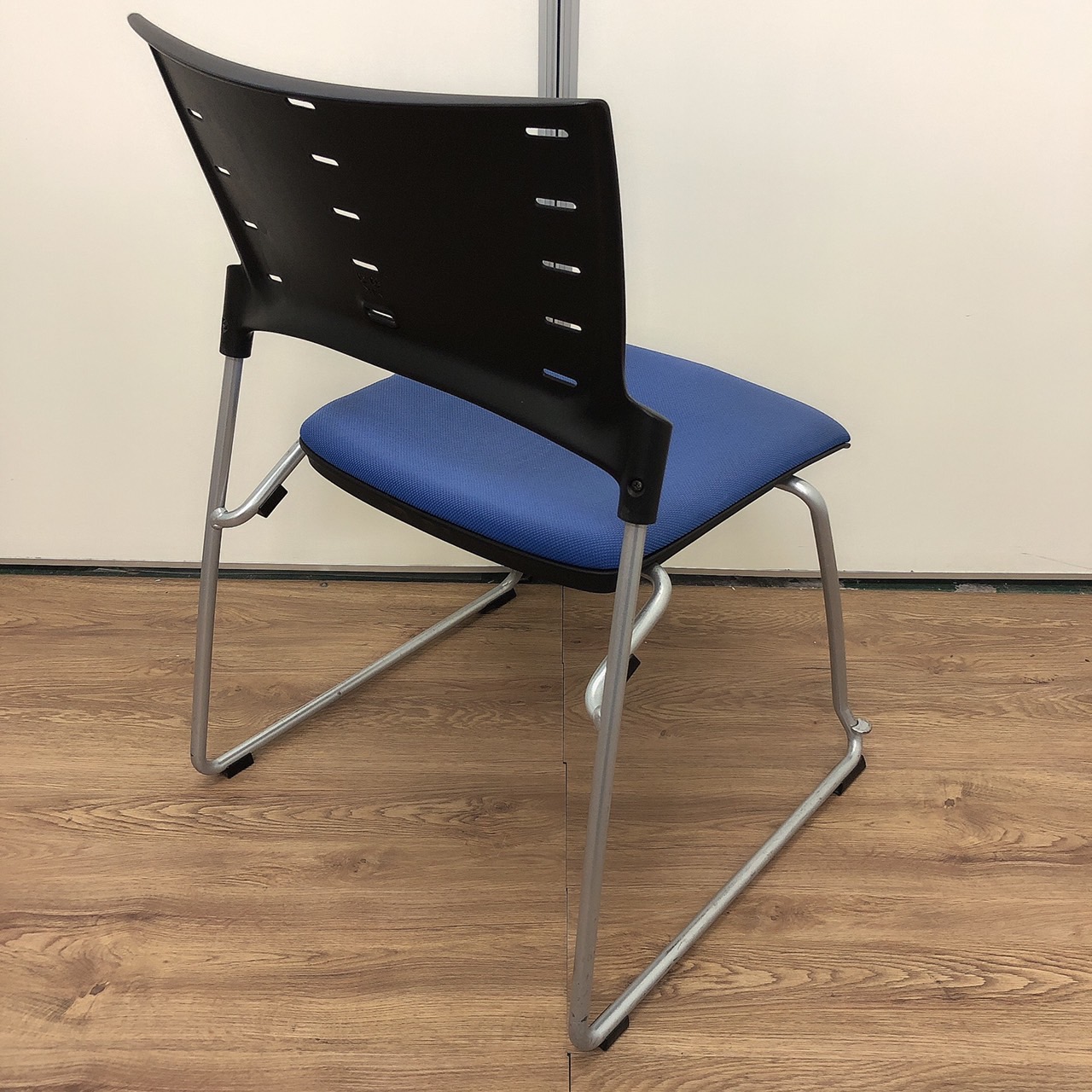 【定価6万円】【ソフトベンディングシェルが背を優しく受け止める!】■イトーキ(ITOKI) マノスチェア(MANOSS) 肘無し スタッキングチェア ミーティングチェア ■背パッド付 ■キャスター脚 ■ブルー