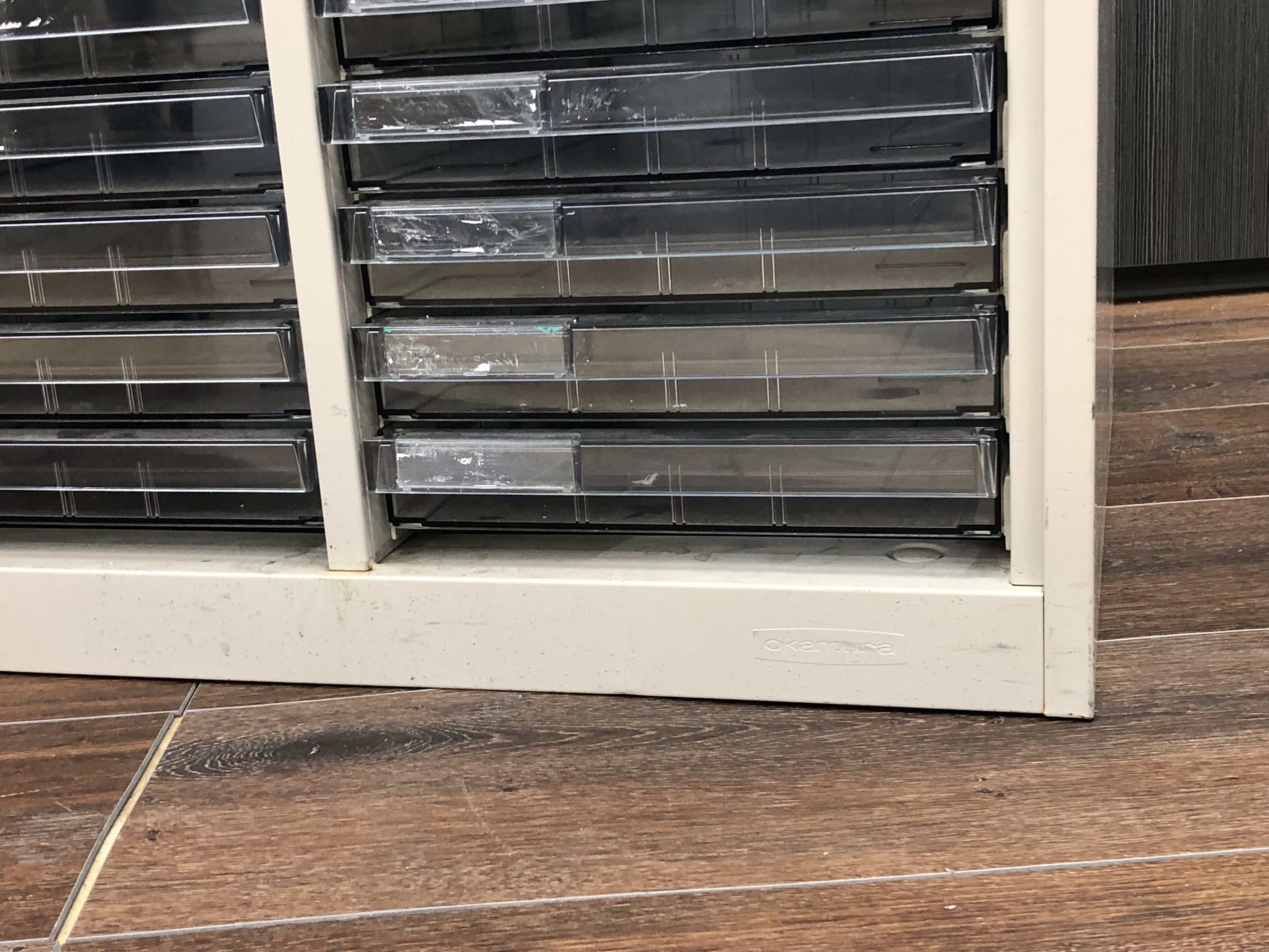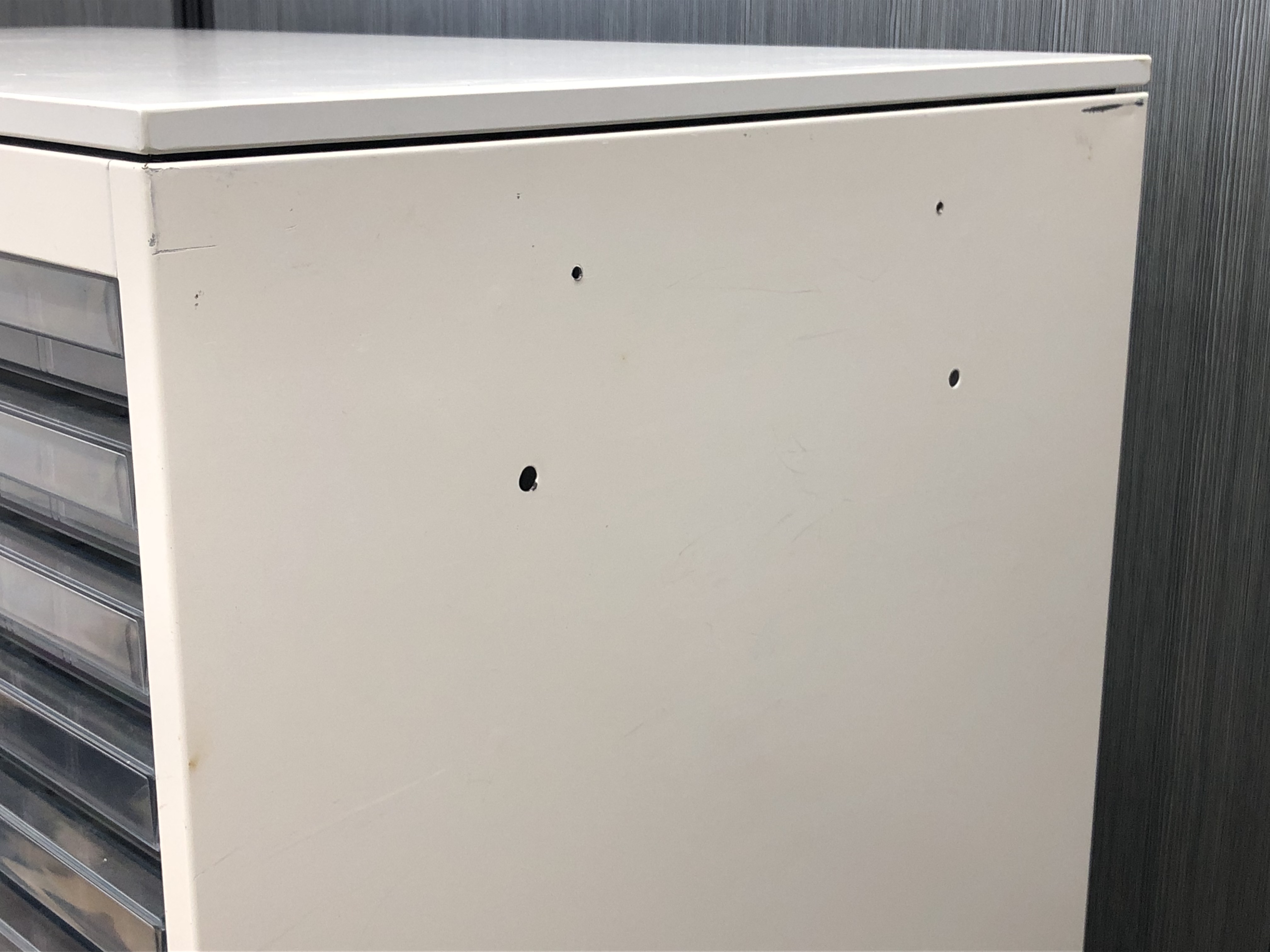 - 多数不具合あり引出の開閉不可、施錠不可、棚板無しといったその書庫の本来の効用を果たすための機能以外の多数が使用不可(例、扉、引出の開閉がしづらいなどがある。 )