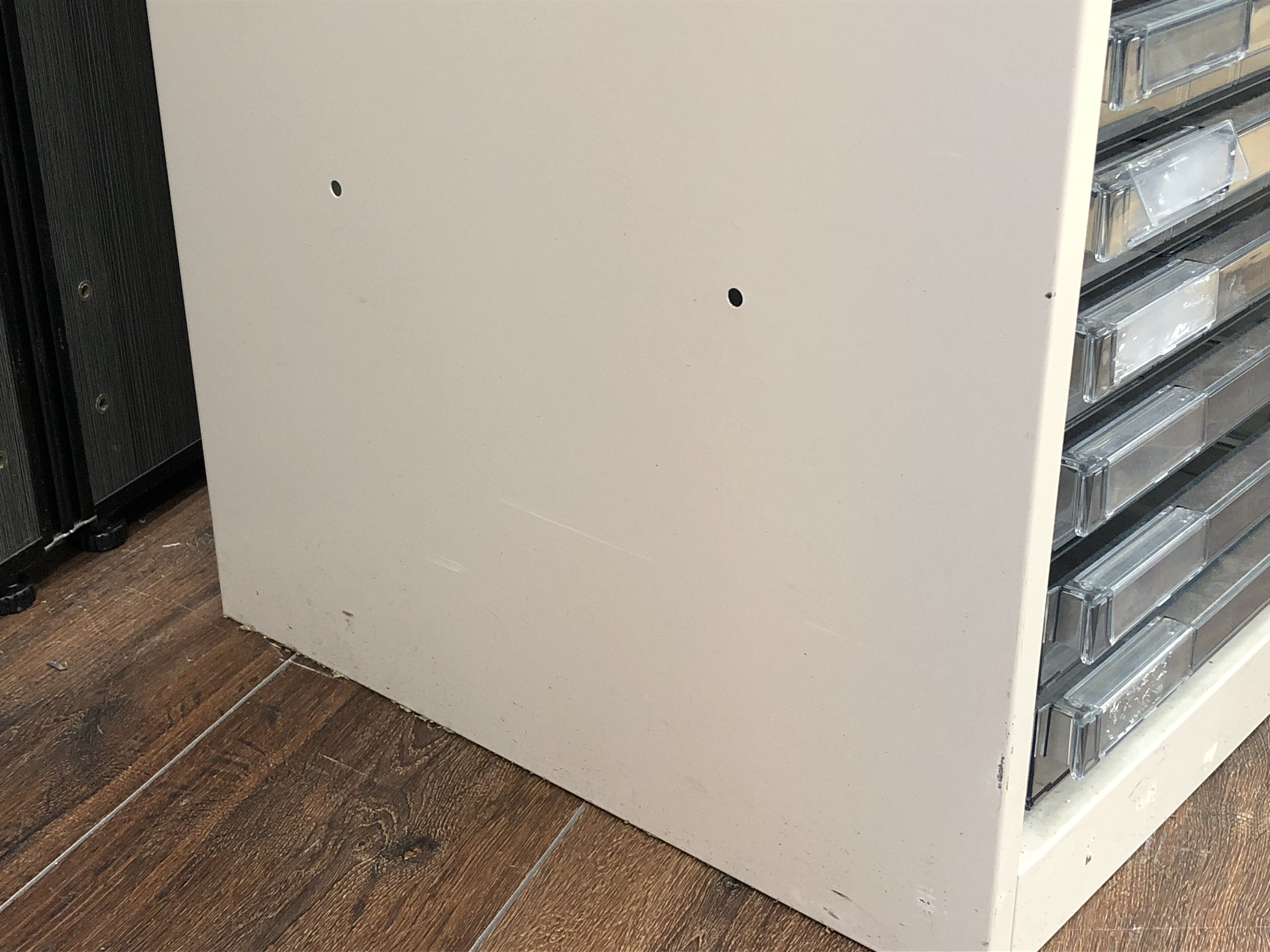 - 一部不具合ありそ引出の開閉不可、施錠不可、棚板無しといったの書庫の本来の効用を果たすための機能以外の一部が使用不可(例、扉、引出の開閉がしづらいなどがある。 )