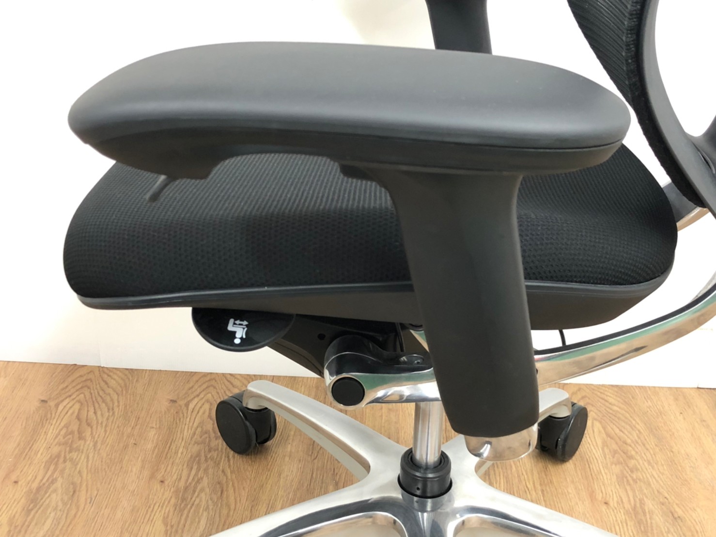 - 肘パッド部の上下(1D)、角度(2D)、前後(3D)、左右(4D)の調整が可能。可動幅は、上下100mm、内側20度、外側10度、前後40mm、左右片側25mmです。