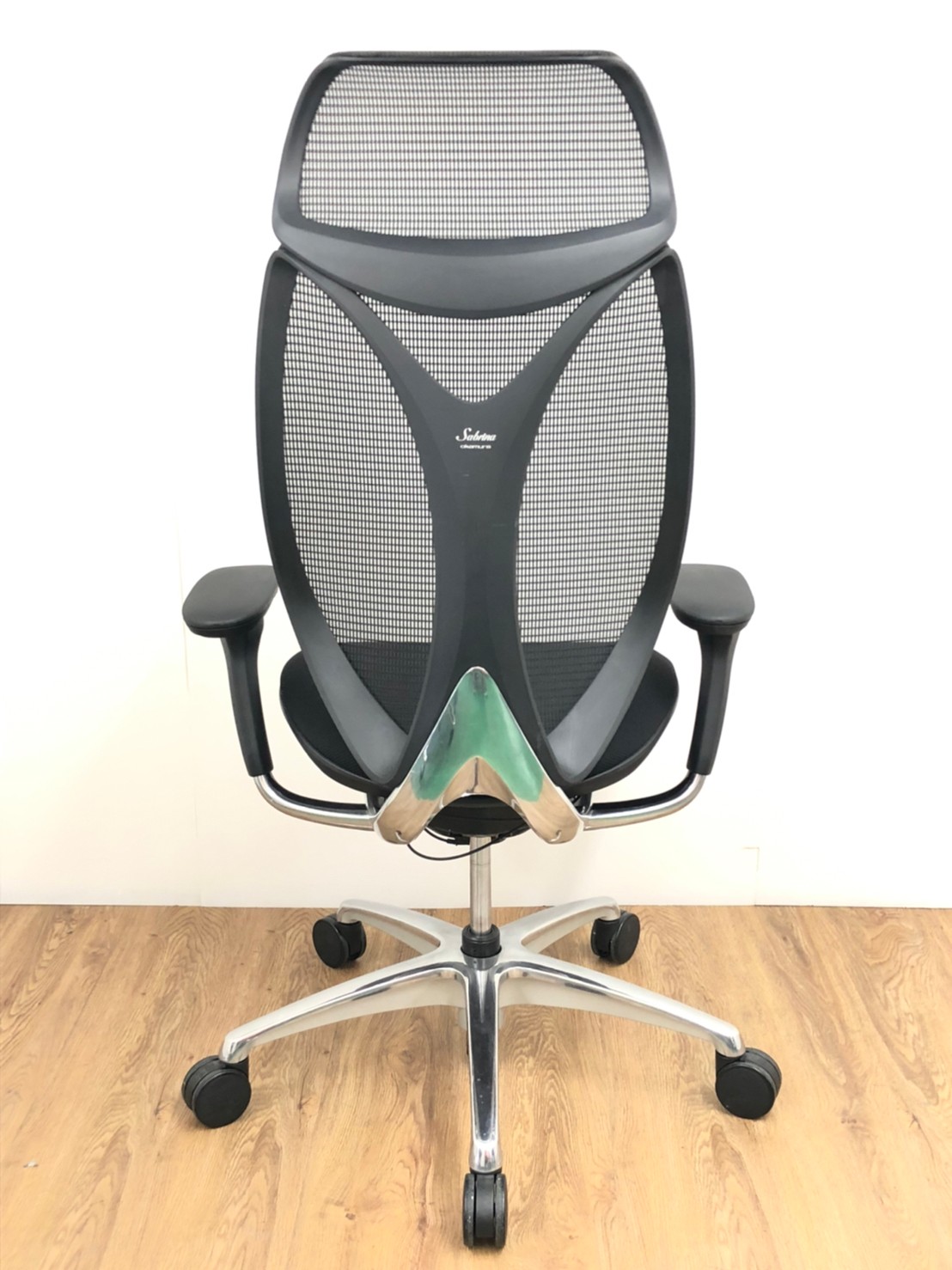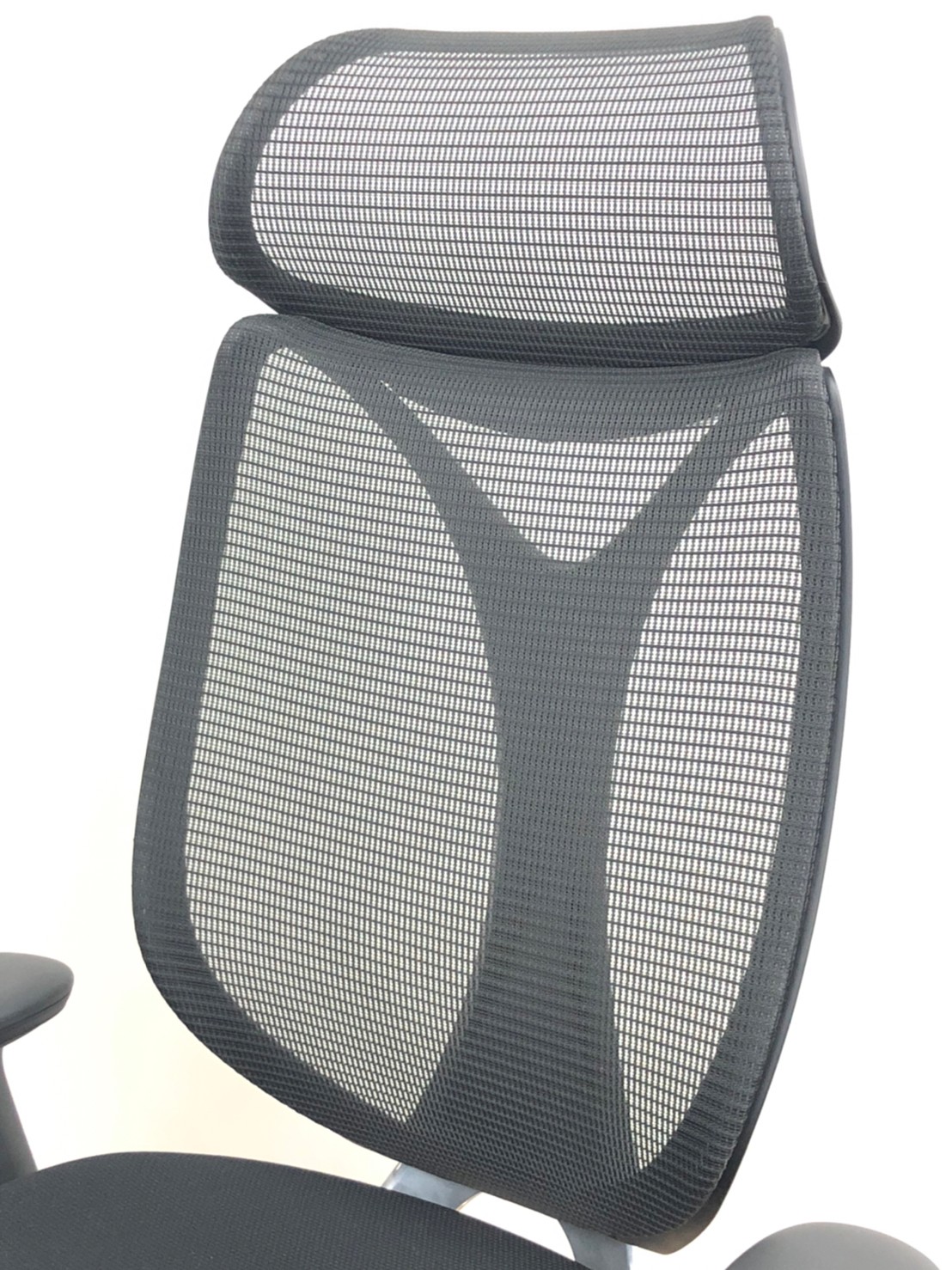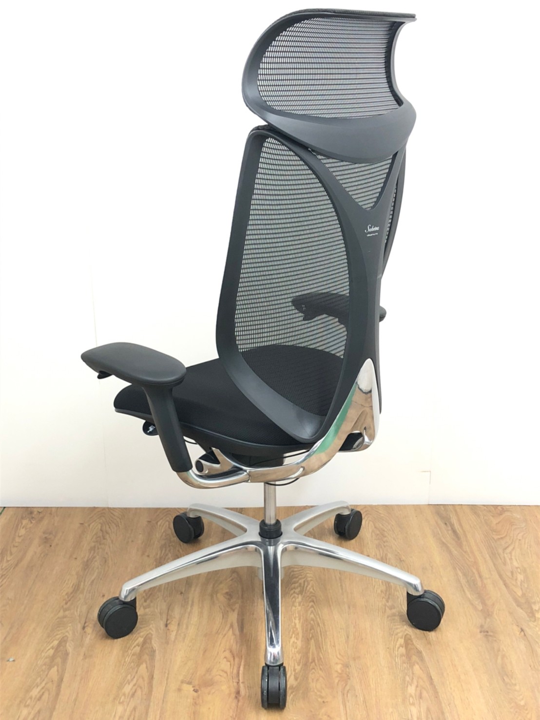 【前傾チルト付・流れるような美しいフォルムの最高級メッシュチェア!】■オカムラ(okamura)製 サブリナ(Sabrina) 肘付き エクストラハイバックチェア 背面メッシュ ■可動肘・ヘッドレスト・ハンガー付き ■ブラック【オフィスにもご自宅用にも人気の一品!】