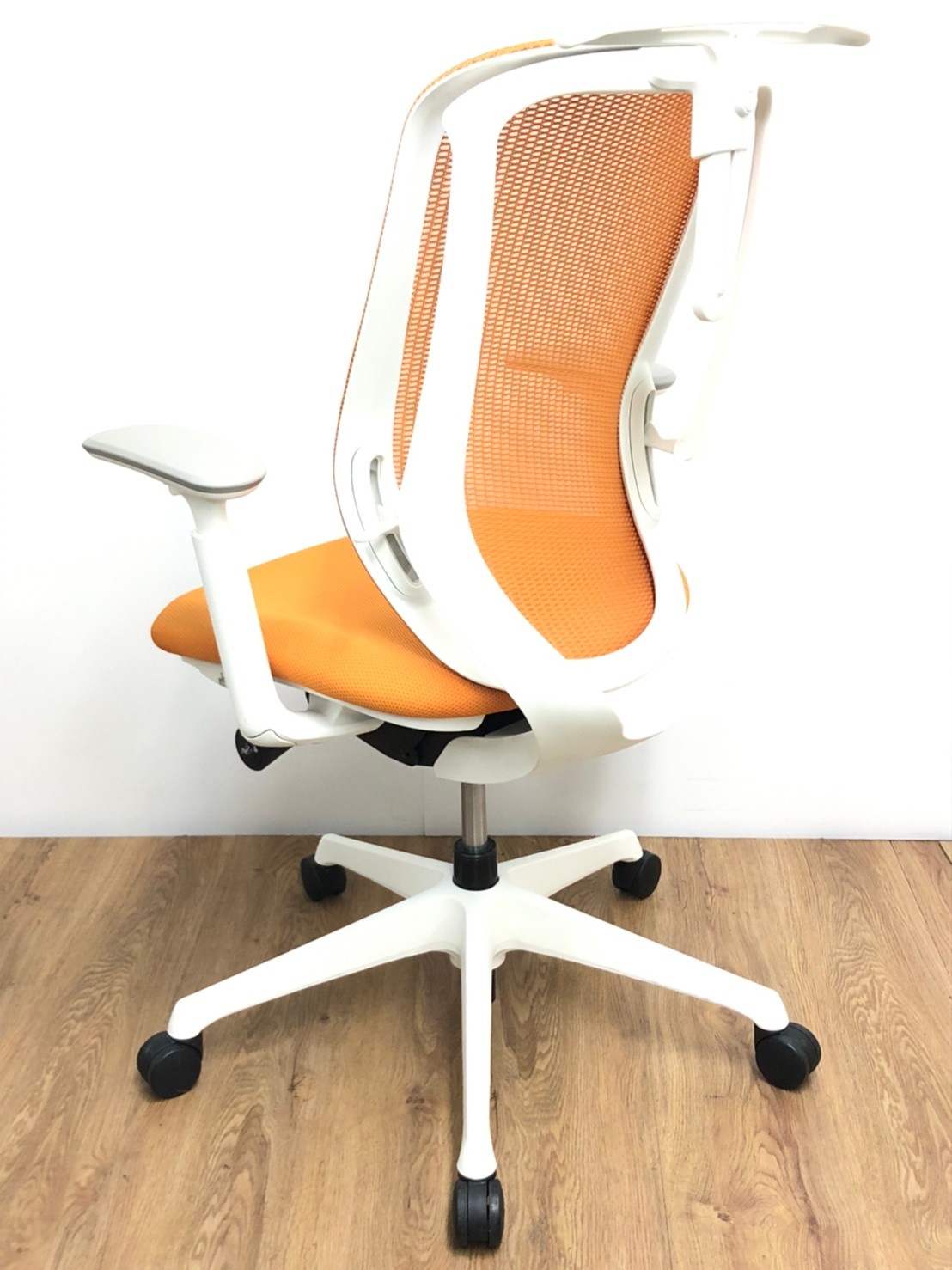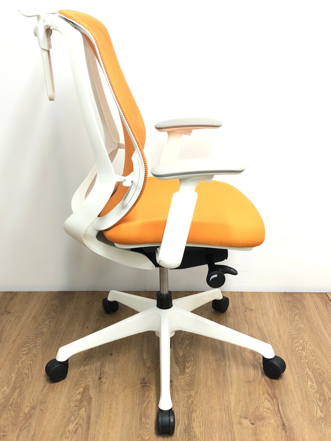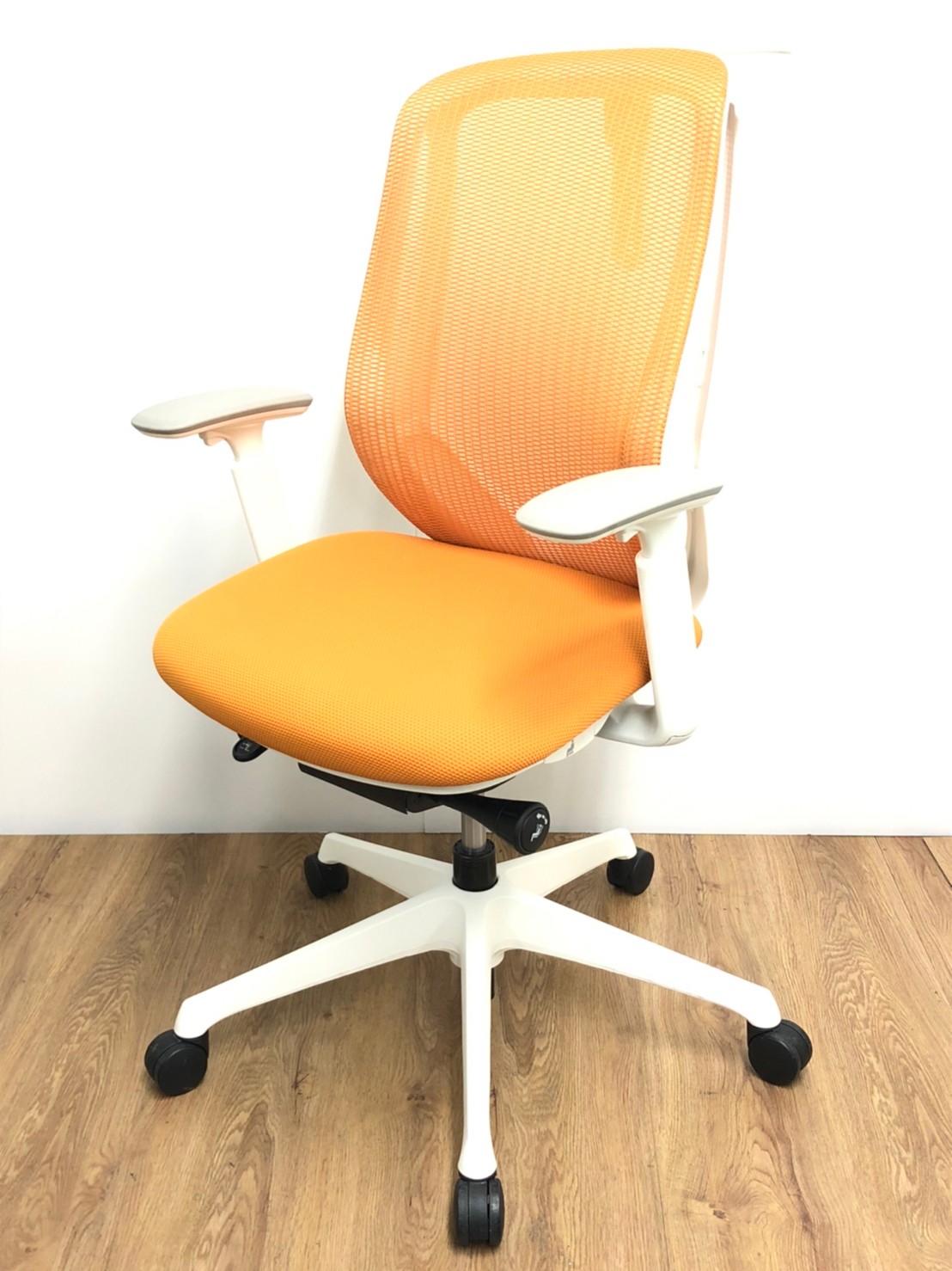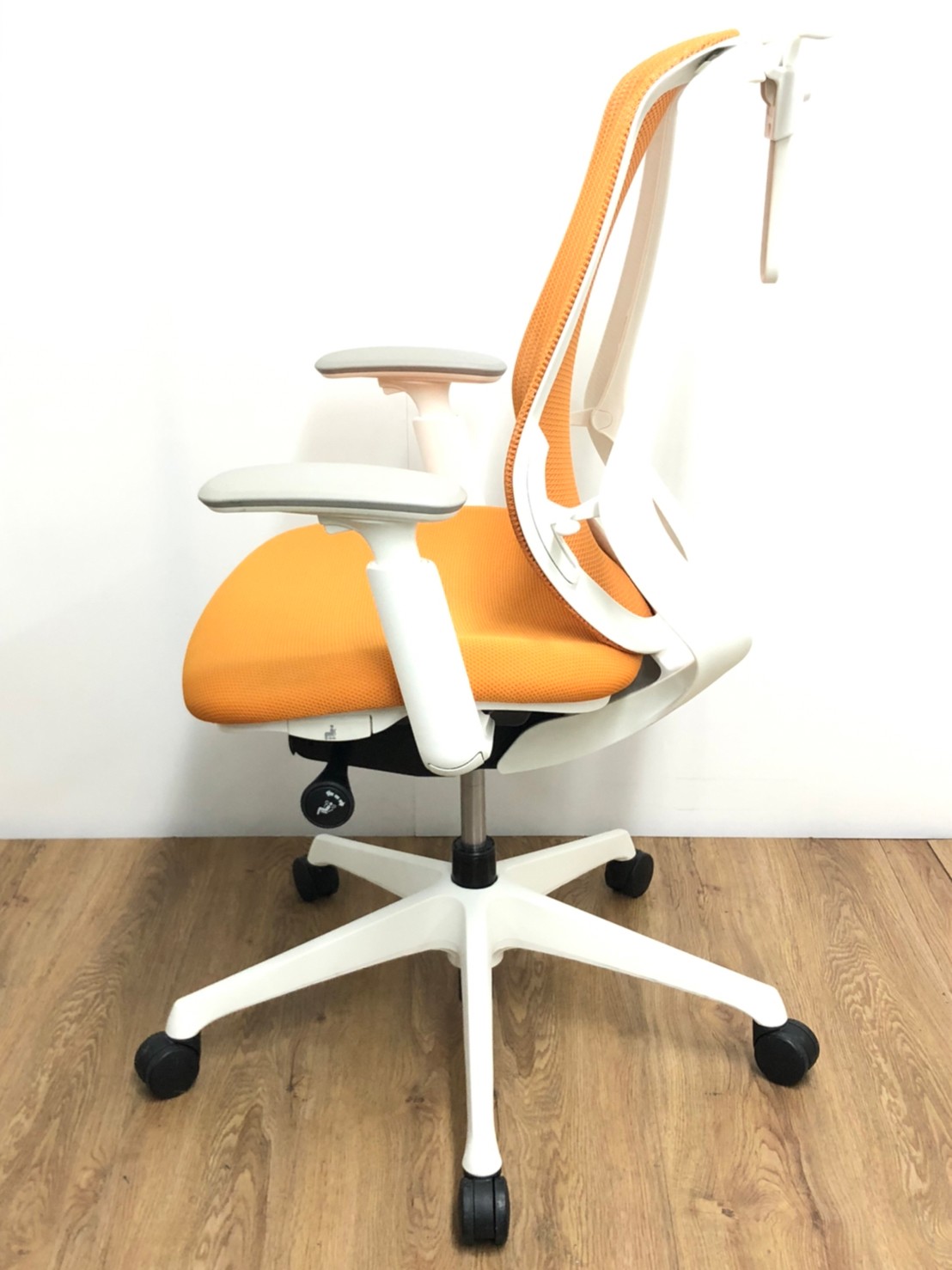 【在庫入替セール品!】【背のカーブを変えられる新感覚のオフィスシーティング!】■オカムラ シルフィーチェア 可動肘付 オレンジ ハンガー付 ホワイトフレーム ■新感覚のオフィスシーティング!【Okamrua Sylphy】