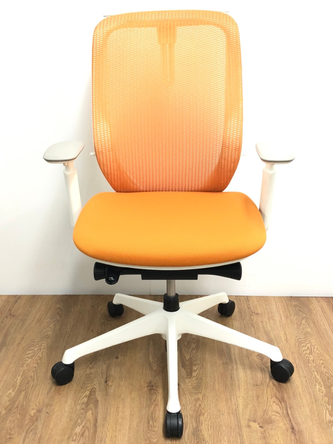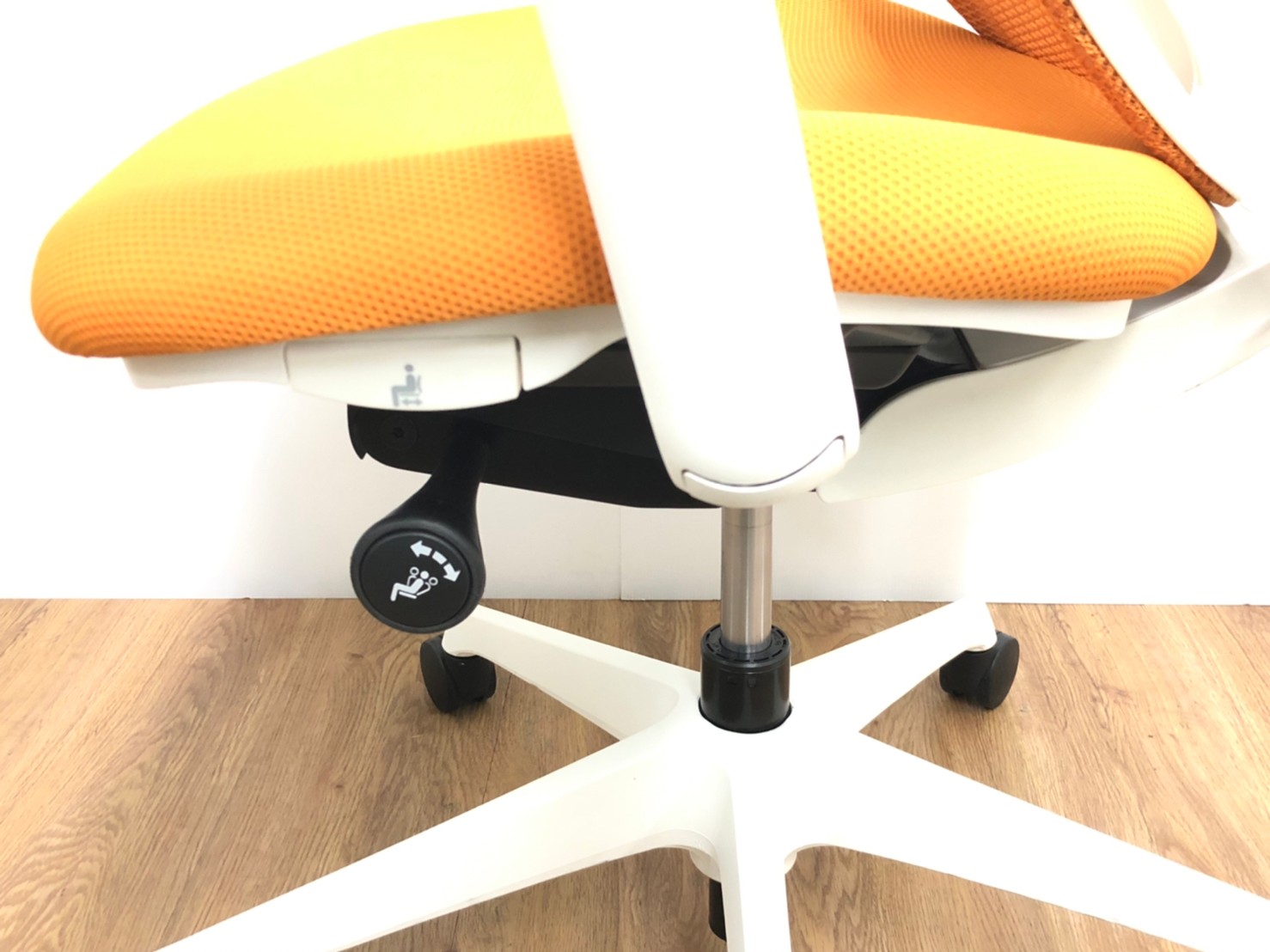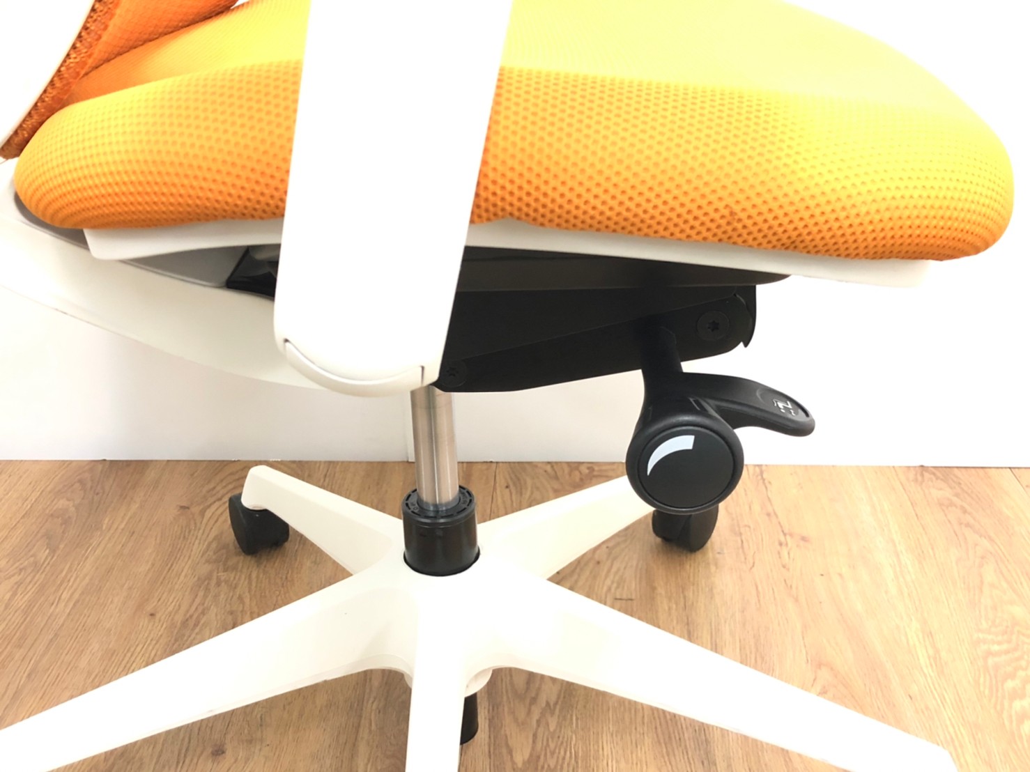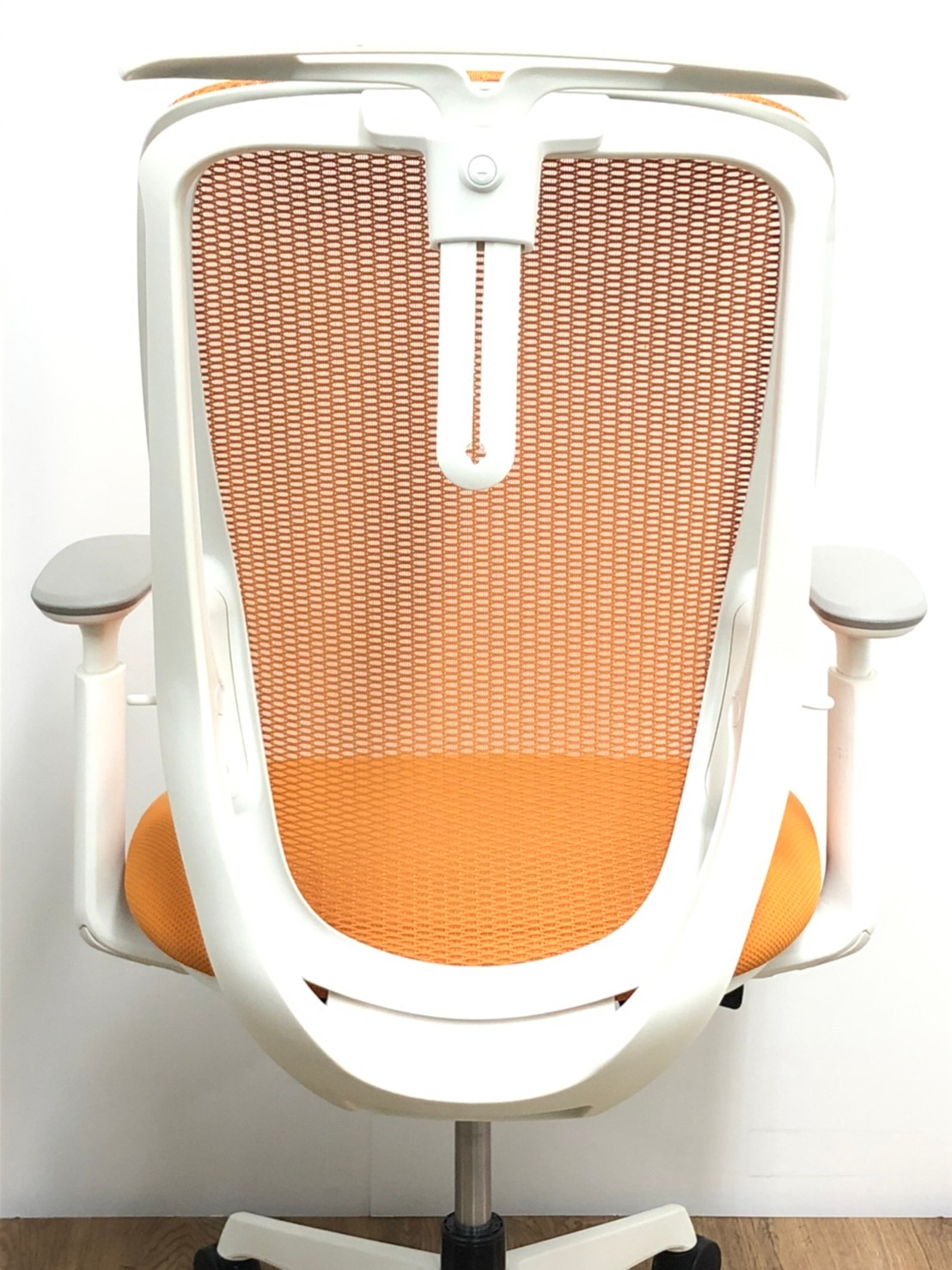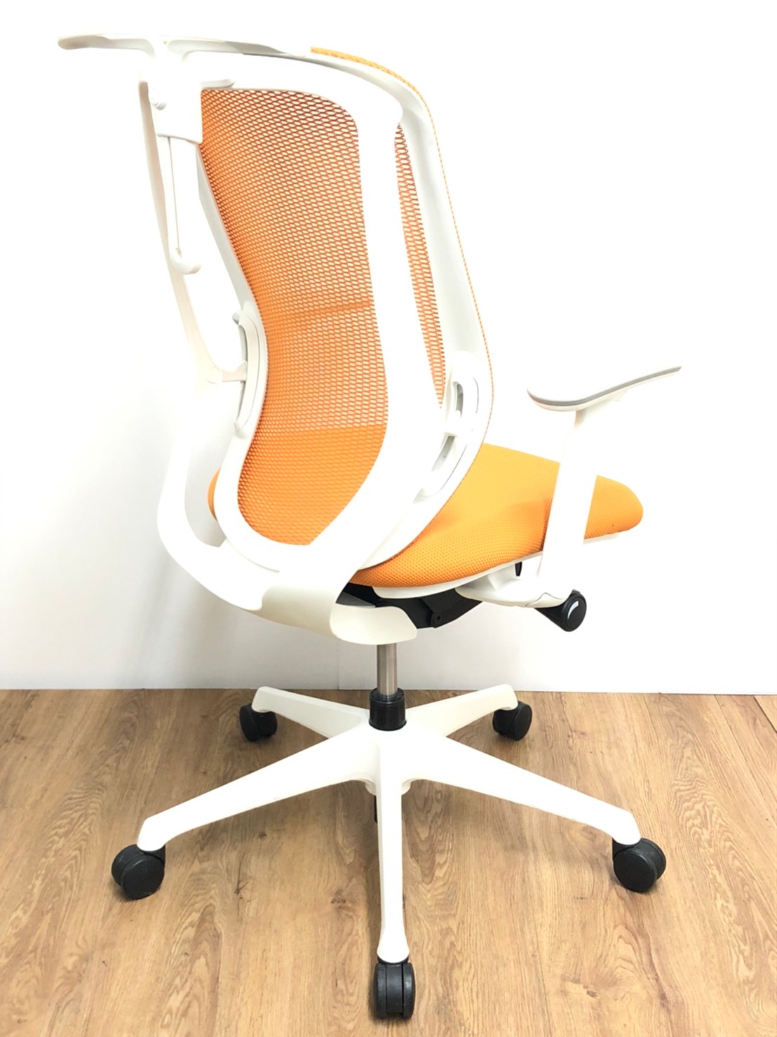 【在庫入替セール品!】【背のカーブを変えられる新感覚のオフィスシーティング!】■オカムラ シルフィーチェア 可動肘付 オレンジ ハンガー付 ホワイトフレーム ■新感覚のオフィスシーティング!【Okamrua Sylphy】