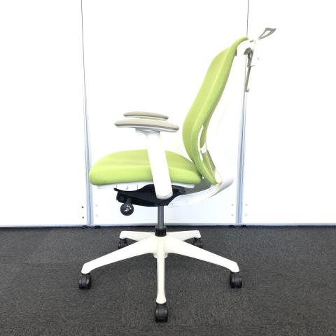 【在庫入替セール品】【人気のシルフィチェアヘッドレスト付きが1脚限定入荷!】オカムラ シルフィ ライムグリーン エクストラハイバック ホワイトフレーム デザインアーム(固定肘) 前傾チルト機能付き