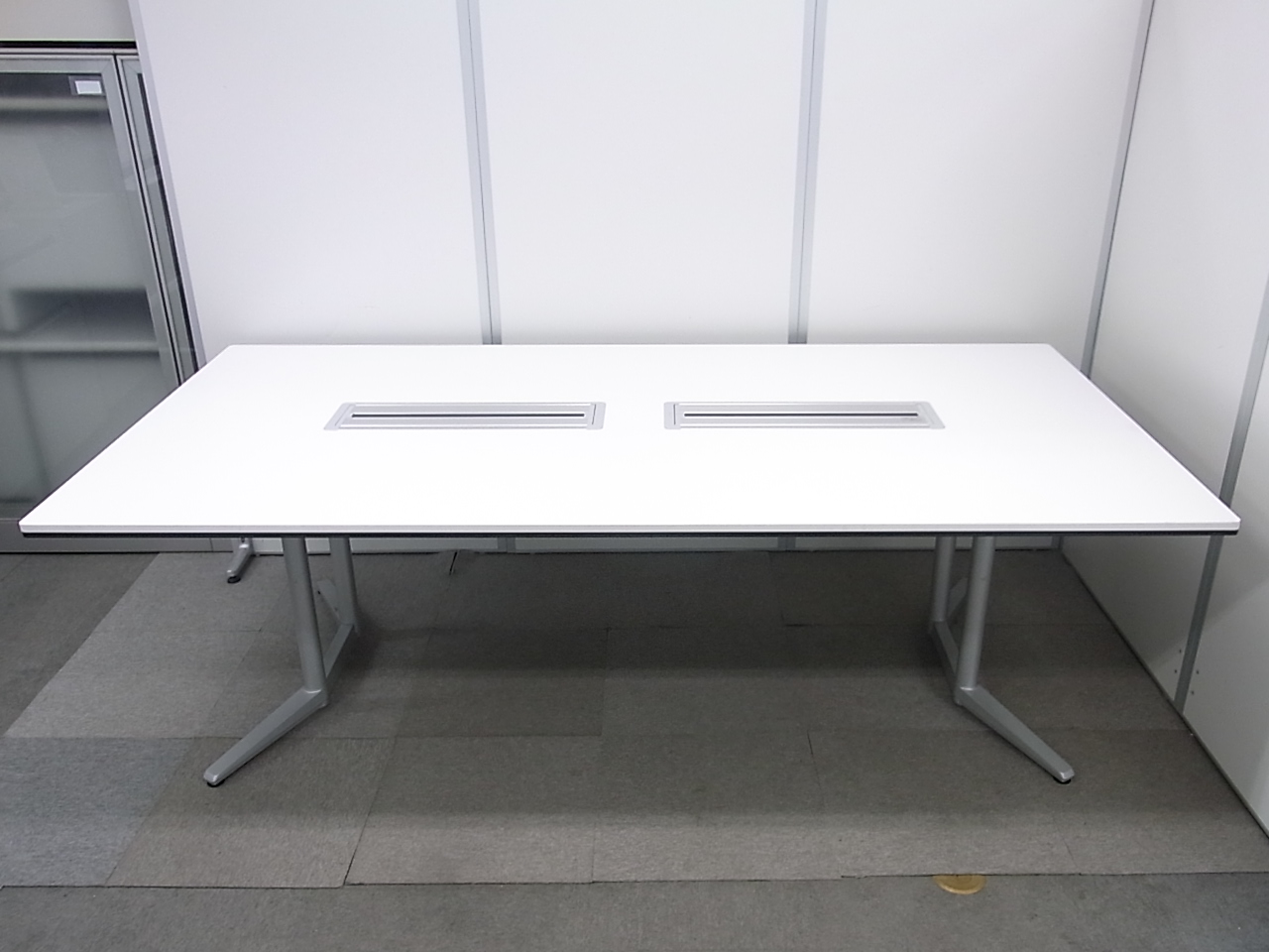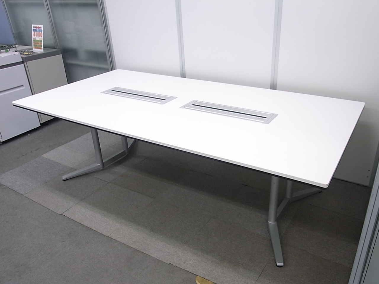 【定価だと30万以上!!】オカムラ(okamura)ラティオシリーズ 大型テーブル 幅2400㎜ ■色:ホワイト 配線穴付き!- 埼玉本店