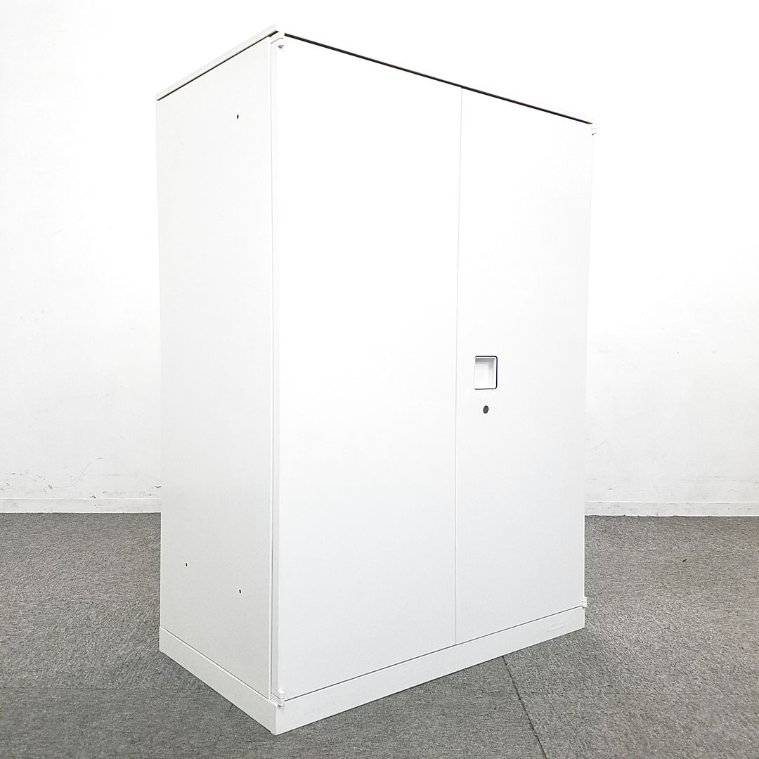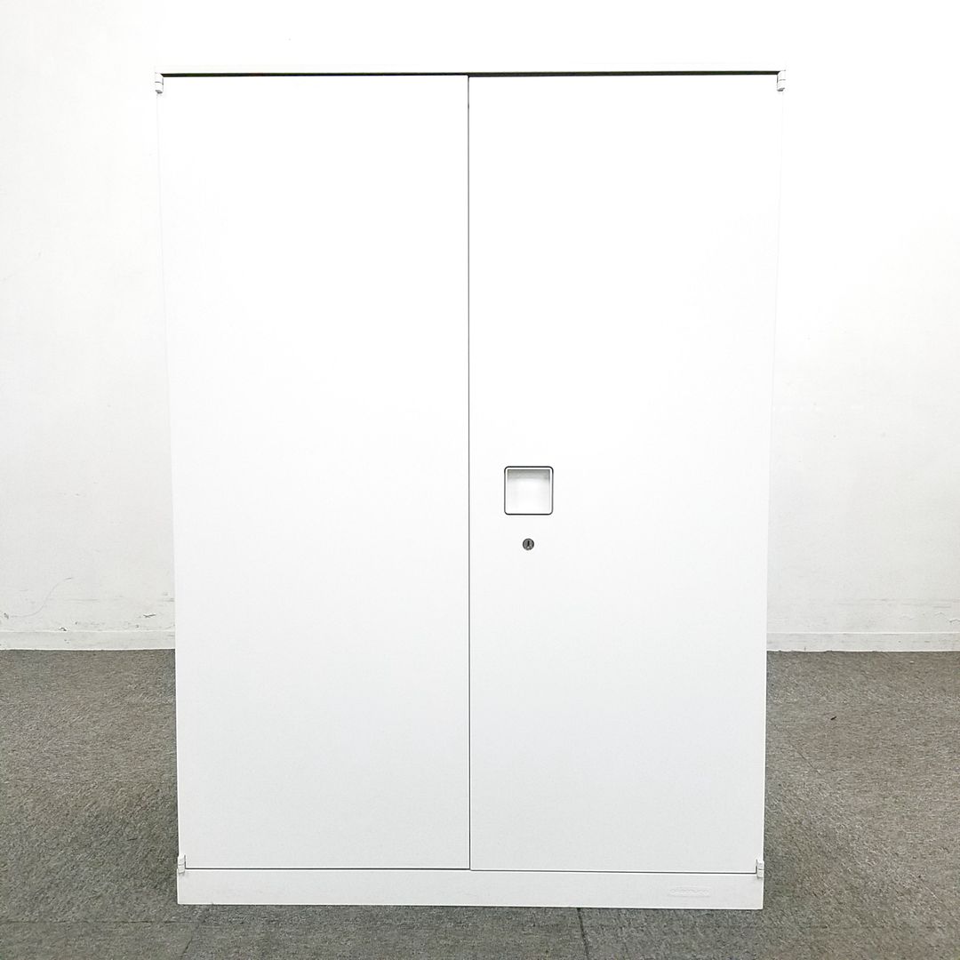 【オフィスの書類をスッキリ整理!取っ手がどの方向からでも開くマルチハンドルが人気!】■オカムラ(okamura)製 レクトラインシリーズ ローキャビネット 両開き書庫 H1250㎜ ■ホワイト ■シリンダー錠
