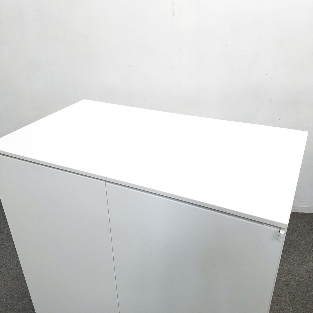 【オフィスの書類をスッキリ整理!取っ手がどの方向からでも開くマルチハンドル!】■オカムラ(okamura)製 レクトラインシリーズ 両開き書庫 ローキャビネット ■本体色:ホワイト ■シリンダー錠 ■ナチュラル天板付き