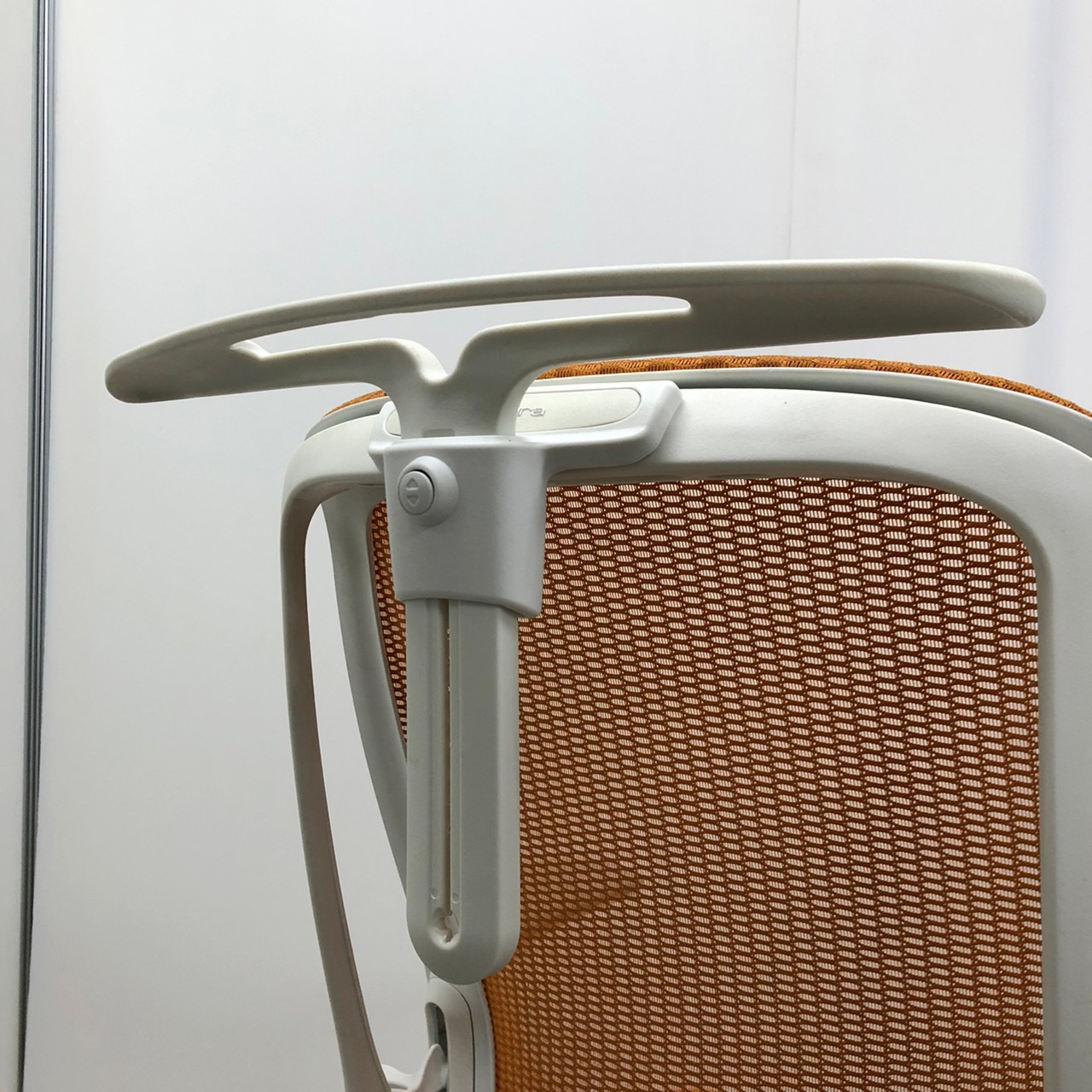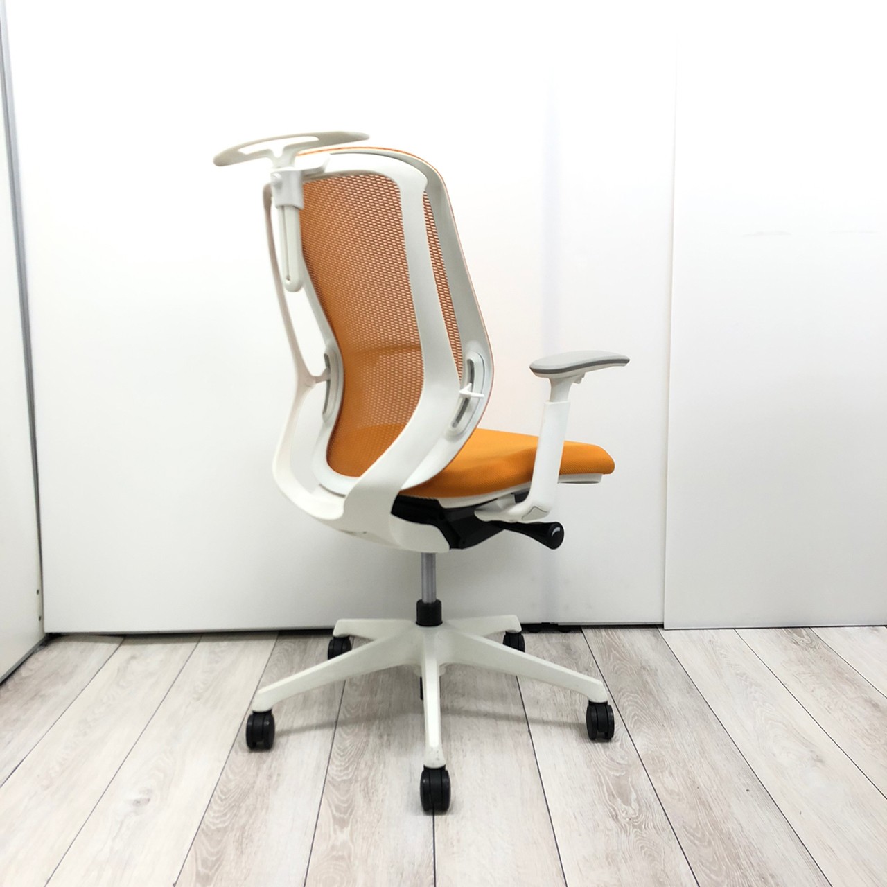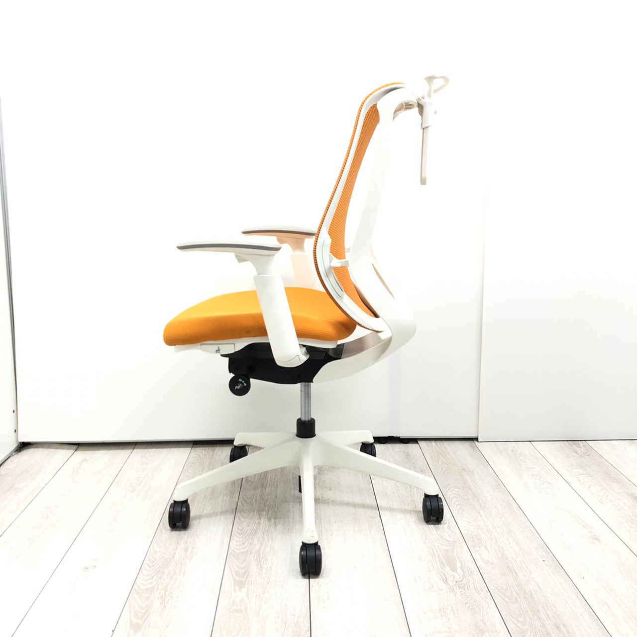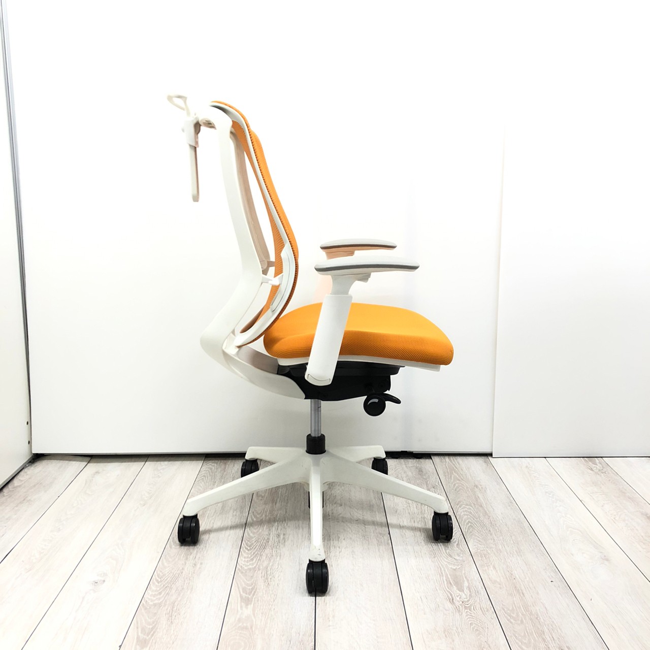 【状態要考慮座面ホツレあり】【通常使用問題ありません!】オレンジカラーオフィス&ご自宅おススメシルフィ―(Sylphy)チェア※ポリッシュフレーム&可動肘掛け&新品ヘッドレスト付◆オカムラ製【2509】弊社使用欄【A01036295 A01031968】