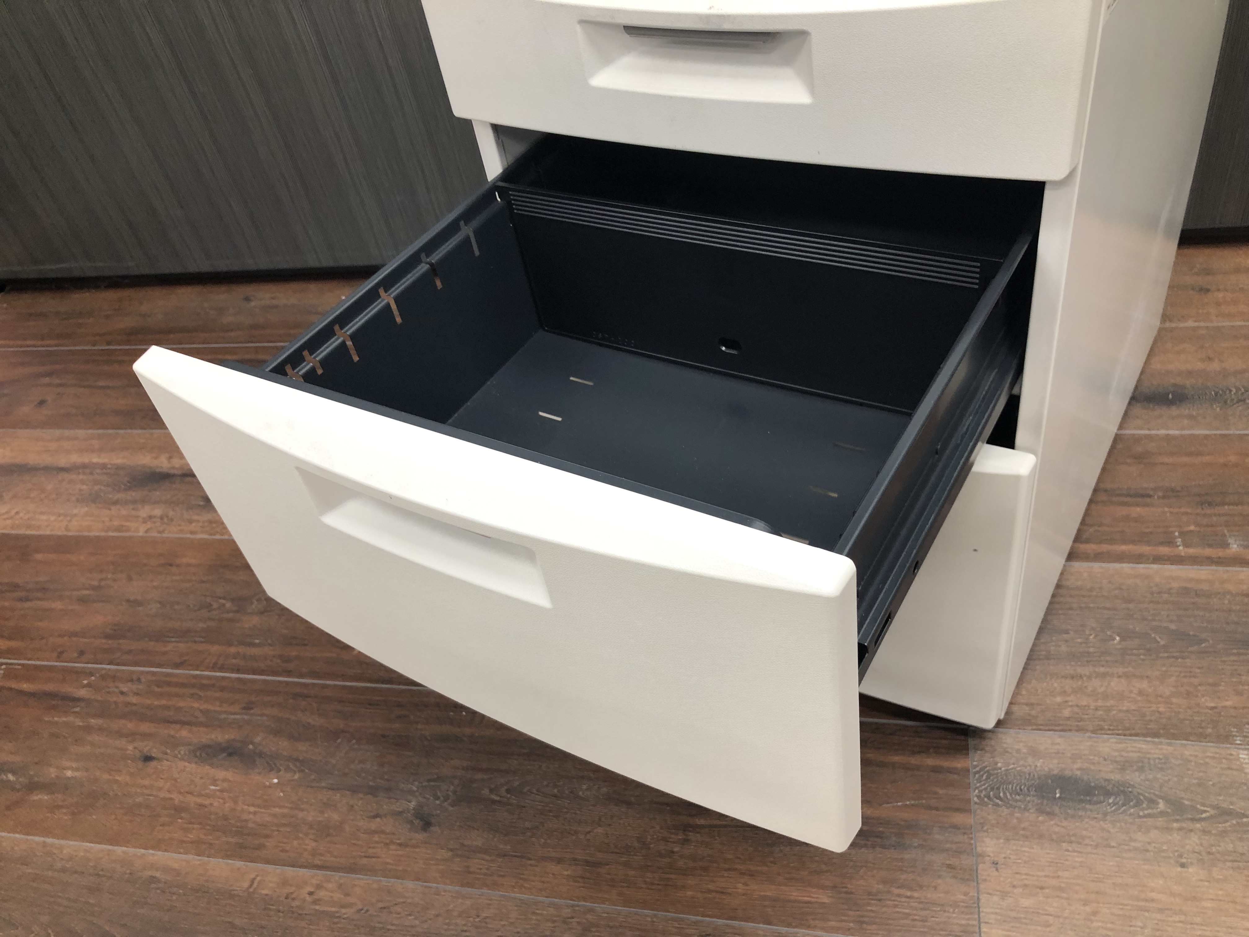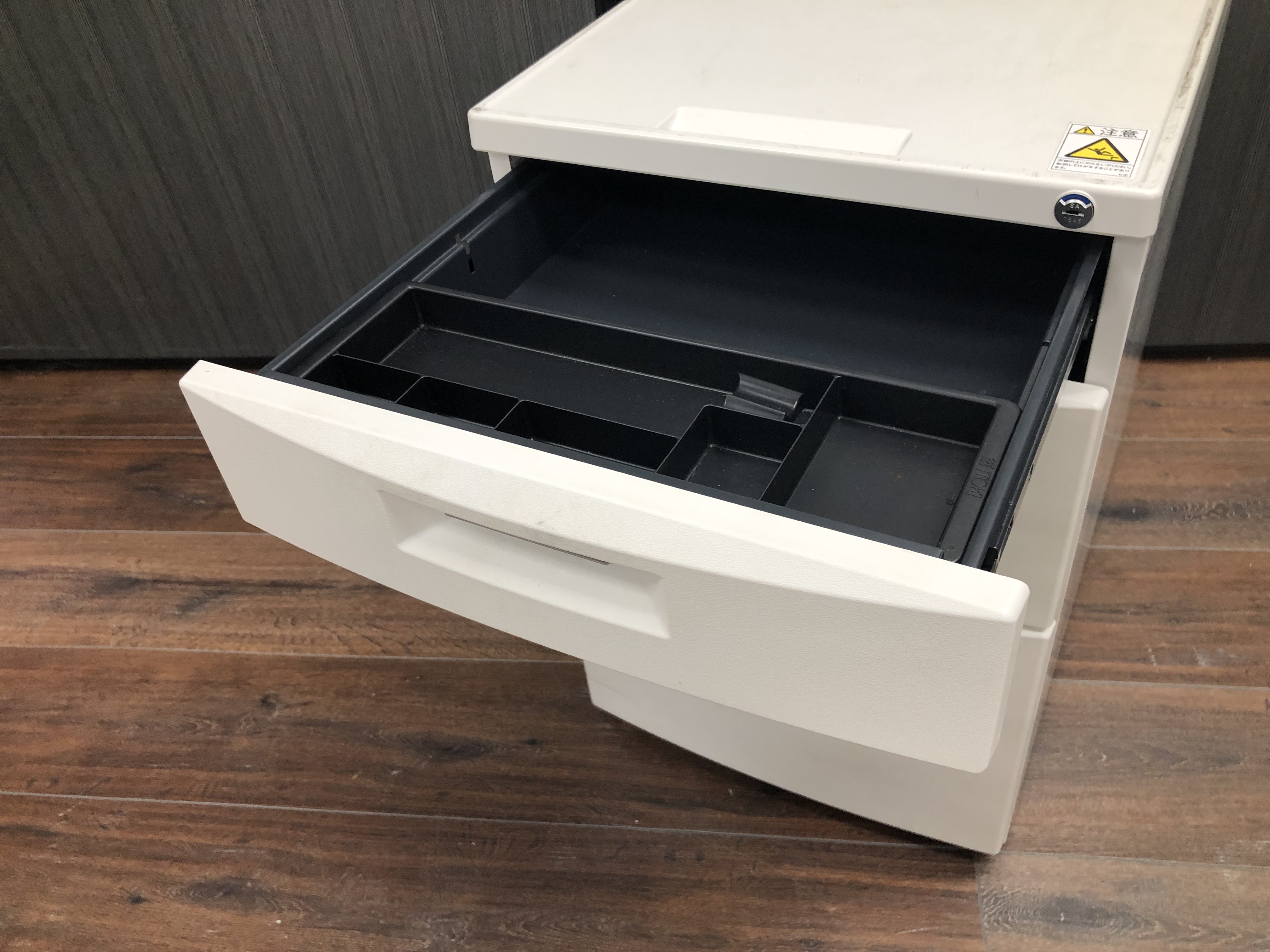 - 一部不具合ありその脇机・ワゴンの本来の効用を果たすための機能以外の一部が使用不可な状態。(例、引出が開閉しづらい、 キャスターロック機能使用不可、ラッチ不良 等がある。)