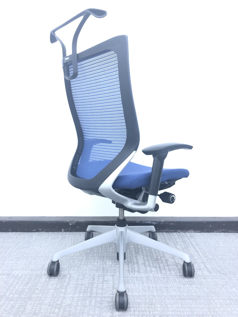 オフィスの執務室、会議室に!/オススメ(おすすめ) /人気商品【弊社使用欄:A01036030】■肘付き ハイバック 背面メッシュ ■可動肘 ■ダークブルー × ホワイトシェル/オカムラ(okamura)製 バロン(Baron)チェア