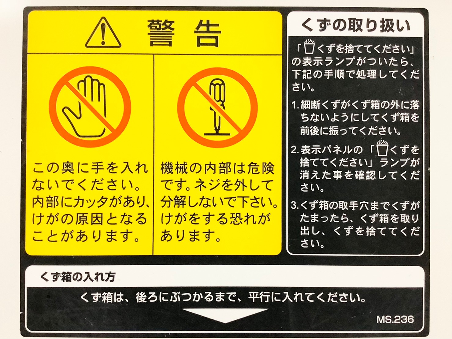 | 最大細断枚数 | 約65枚【A4PPC(64g/㎡)】新品時 |
