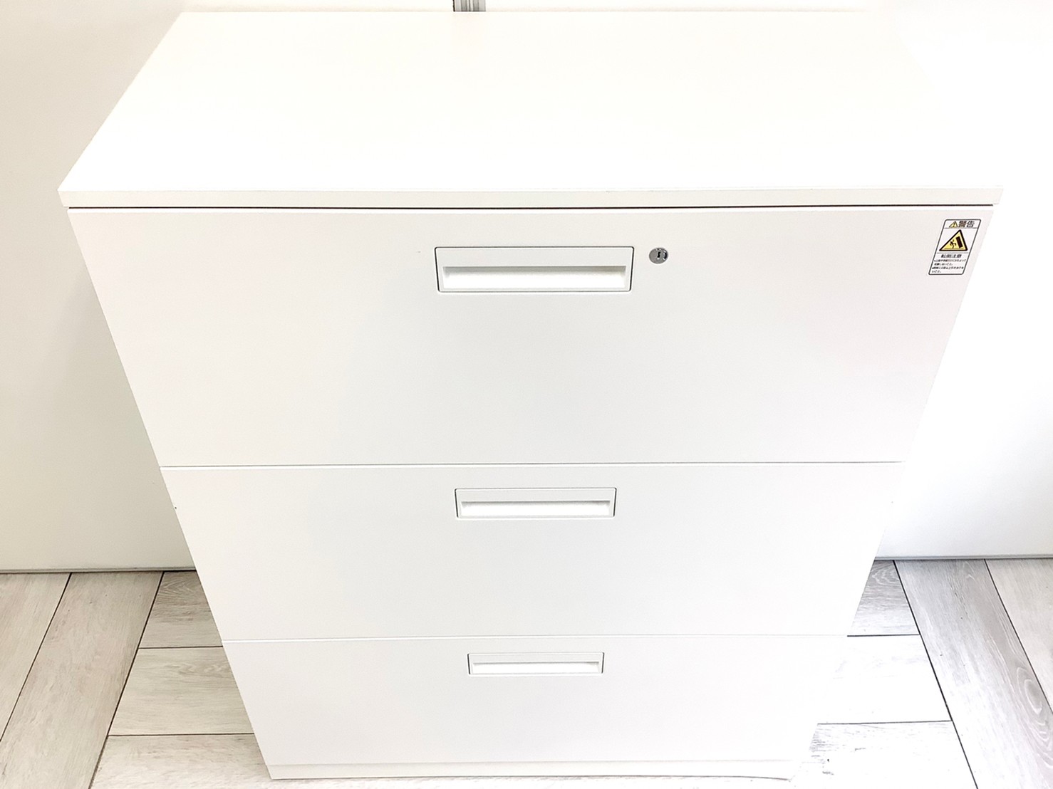 【4台入荷】【収納力抜群の3段ラテラル書庫!A4書類が大量に収納可能!】■コクヨ(KOKUYO)製 エディア(EDIA)シリーズ 3段ラテラル ローキャビネット ■天板/ベース付き ■ホワイト ■シリンダー錠